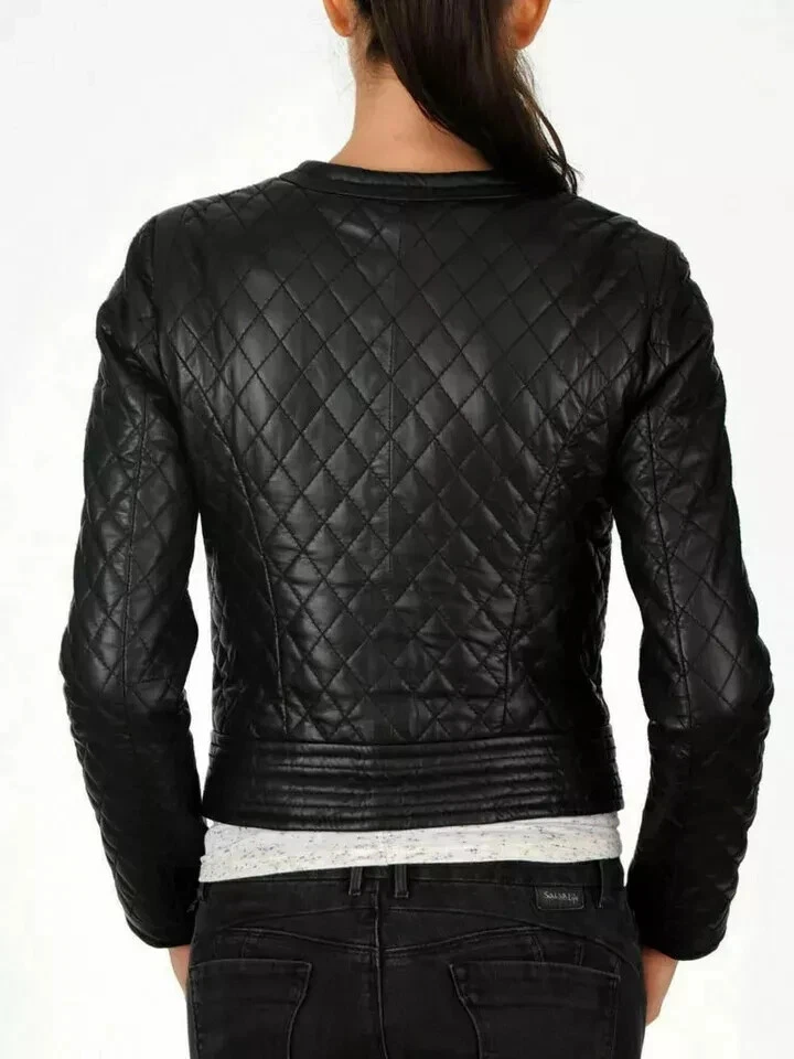 Embrace timeless style with our Women's Real Lambskin Leather Biker Jacket, a versatile piece that transcends occasions from casual outings to more formal events. The solid black color and classic motorcycle jacket design make it an essential addition to any wardrobe, offering a chic, quilted finish that's as functional as it is fashionable. Crafted for comfort and durability, the jacket features a polyester lining and insulation, ensuring warmth and ease of movement. With a range of sizes from XS to 4XL and a regular fit, this jacket caters to various body types. The convenient zip closure, long sleeves, and timeless army theme accentuate its appeal, while the dry clean only garment care ensures its preservation.
