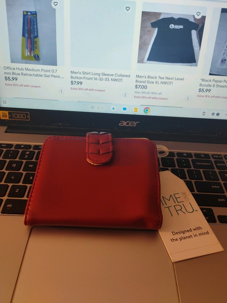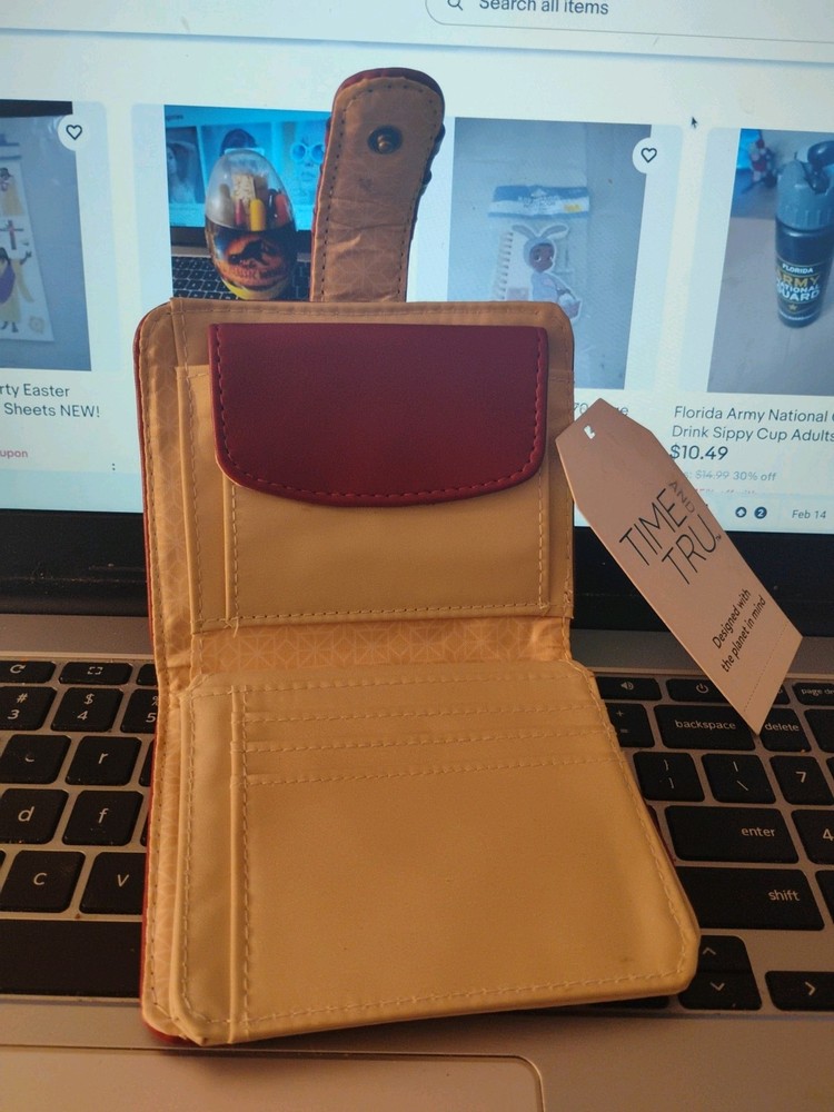 Type: Wallet Style: Everyday Department: Women UPC: Does Not Apply Features: Folding gtin13: Does Not Apply Brand: Time And Tru Material: synthetic Color: Red
