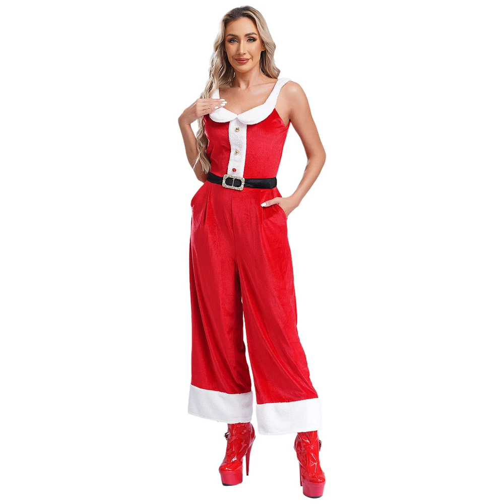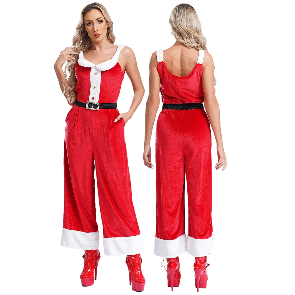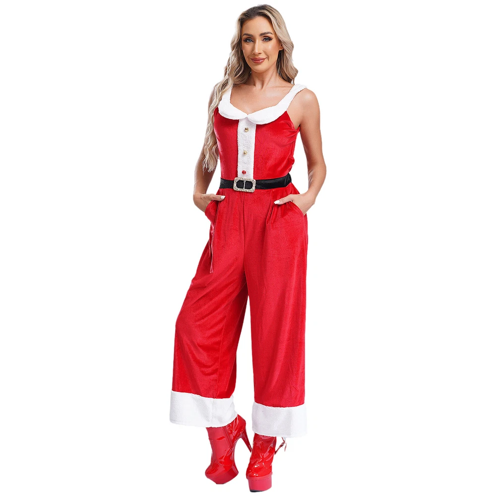 Womens Rompers Velvet Overalls Birthday Christmas Sleeveless Jumpsuit Pants