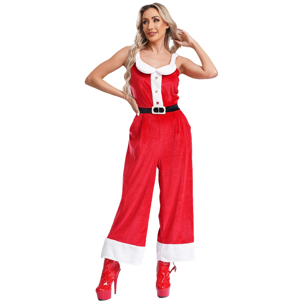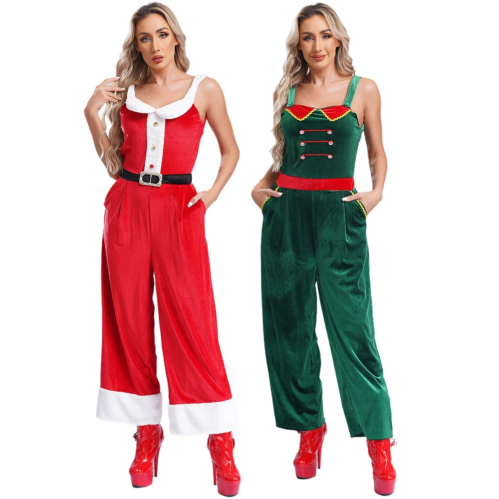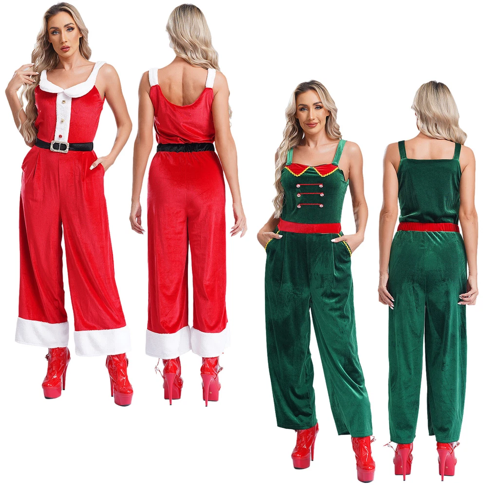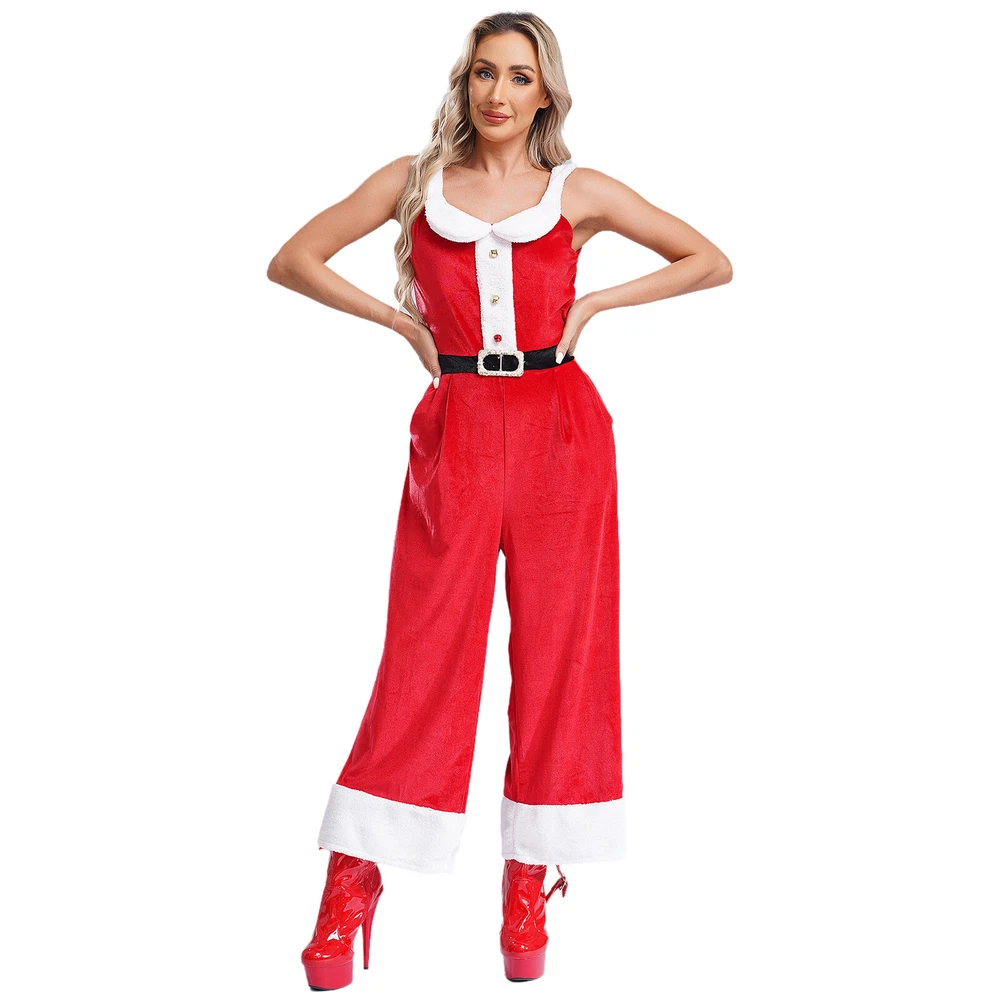 Womens Rompers Velvet Overalls Birthday Christmas Sleeveless Jumpsuit Pants