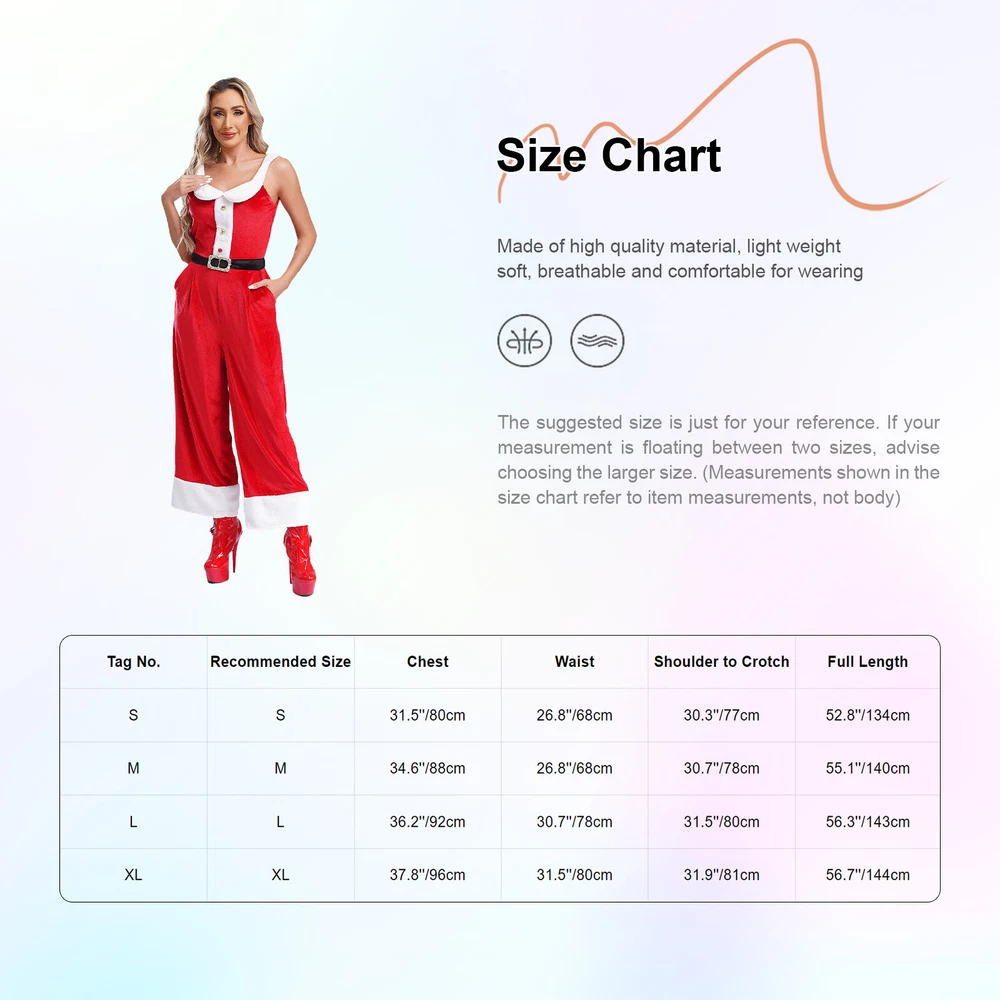 New Arrivals Hot Sale Women's Dresses Women's Swimsuit Girls'Dresses Girls'Sleepwear Girls'Swimwear Boys'Clothing Baby Clothing NEW ARRIVALS PRODUCT DETAILS Womens Rompers Velvet Overalls Birthday Christmas Sleeveless Jumpsuit Pants #1 Set Include : 1Pc Jumpsuit Condition : Brand New Material : 95% Polyester, 5% Sapndex Features : Made of skin-friendly and soft polyester, premium velvet is comfortable and breathable, bringing a better wearing experience. One-piece jumpsuit for women is designed with sleeveless, elastic waist, wide leg pants, real side pockets and lovely decoration. Cute buttons or metal bell, gold trim, classic colors and contrast design, are full of Christmas sense to bring more fun to the festival. Velvet fabric has unique luster to brings a sense of luxurious and gorgeous. Perfectly dressing up you as Mrs. Santa or Christmas elf. Suitable for Christmas Eve, Christmas party, dating night, nightclub, pajamas party, cosplay, carnivals, dress-up party and so on. Size Chart The suggested size is just for your reference. If your measurement is floating between two sizes, advise choosing the larger size. (Measurements shown in the size chart refer to item measurements, not body) Tag No. Recommended Size Chest Waist Shoulder to Crotch Full Length S S 31.5’’/80cm 26.8’’/68cm 30.3’’/77cm 52.8’’/134cm M M 34.6’’/88cm 26.8’’/68cm 30.7’’/78cm 55.1’’/140cm L L 36.2’’/92cm 30.7’’/78cm 31.5’’/80cm 56.3’’/143cm XL XL 37.8’’/96cm 31.5’’/80cm 31.9’’/81cm 56.7’’/144cm Friendly Tips: The size is measured by hands, please allow minor error of measurement. Photo color might be a little different from the actual product due to color display of different monitors. #2 Set Include : 1Pc Hat Condition : New Without Tag Material : 100% Polyester Features : Made of skin-friendly and soft polyester with soft touch, is lightweight and comfortable to wear, keeps your head warm. Adult-size Santa hat has classic Christmas elements, red velvet, plush white brim and lovely pompom on the top. The classic plush Christmas hat is a must-have for Christmas, helps to create a pleasant and interesting party atmosphere. Great gifts for friends and families. Different types and quantities for choosing from, please check your choice again before ordering. Suitable for Christmas Eve, Christmas party, masquerade, circus, photography, family gathering, carnivals, dress-up party and so on. Size : 45x32cm/18x12.8 inch Friendly Tips: The size is measured by hands, please allow minor error of measurement. Photo color might be a little different from the actual product due to color display of different monitors. Product names are trademarks of the listed manufacturer or other owners, and are not trademarks of littleworkss. The manufacturer does not necessarily endorse use of these products. Terms and Conditions Shipping Combined shipping is limited only to the items listed under this seller account : littleworkss All the free shipping item don't offer discount. We REDUCE US$1.00 on shipping cost for each additional item. Please contact us to send you the update invoice once you finish your purchase. Please note that only the item in same currency can be combined.Please note that we do NOT offer shipping discount for bidding orders or item value less than $5.00 Please verify your address during checkout. We are not responsible for any wrong or undeliverable addresses. Your item will be sent to your ebay address. Please make sure your ebay address is correct. Any non- received items caused by invalid address are not in our full refund or replacement policy. All items will be shipped within 1 business day after full payment is received. It takes about 10-20 days to US UK AU DE; about 20-35 days to other countries.Shipping may influenced by holidays, events and other uncertainties. We could not guarantee the arrival time. If you can't accept the shipping time, please check the extra charge with us to ship your item via express. Please check my other products below: Girls Rompers Devil Jumpsuit Sequins Bodysuit Costume Dancewear High Waist 70s USD 8.99 Unisex Kids Hoodie Hooded Pullover Long Sleeve Jacket Workout Gym Zipper Top USD 8.99 Men Bodysuit Yaga Unitard Short Sleeve Jumpsuit Ice Silk Nightclub Gym Adult USD 7.99 US Adult Guard of Honor Shoulder Boards Fringe Epaulet Halloween Cosplay Costume USD 9.39 US Kids Boys Tuxedo Sequined Blazer Tailcoat Swallowtail Jackets Blouse Costumes USD 9.59 US Adult Head Mask Sexy Toy Mask 3 Hole Head Cover Open Mouth and Eye Face Masks USD 8.59 US Men's Priest Clerical Shirts Short Sleeves with Free Slip-in Tab Collar Shirt USD 7.69 US Sexy Women's Mesh See Through Bodystockings Full Body Jumpsuit Teddy Bodysuit USD 7.29 US Kids Prisoner Jailbird Prison Jumpsuit Prisoner Overalls Halloween Bodysuits USD 8.99 Kids Boys Set Goalkeeper Outfit Football Suit T-shirt Uniform Sweatshirt Pants USD 9.99 Women Leotard Bodycon Bodysuit Policewoman Jumpsuit Officer Theme Purse Police USD 10.99 Women Thigh High Stockings Performance Socks Pole Dance Hosiery Solid Color USD 8.99 Girl Outfit Western Suit A-line Cowgirl Costume Kids Hat Breathable Dress Soft USD 9.89 Kids Unisex Outfit Santa Set Smooth Christmas Costume Cute Cosplay Gift Box Hat USD 9.39 Women Nightdress Bar Sleepwear Smooth Skirt Tight Dress Dating Buckle Sexy Mini USD 7.99 Kids Girls Tracksuit Stage Show Dancewear Children Jacket With Pants Workout USD 11.99 Kids Boys Costume Gold Trim Halloween Festival Fairy Tales Suit Cosplay 2Pcs USD 15.59 Girls Jumpsuit Performance Cheerleading Carnival Cheer Leader Costume Festival USD 8.99 Kids Unisex Western Cowboy Costume Long Sleeve Halloween Fancy Dress Up Outfit USD 13.99 Boys Girls Western Cowboy Theme Party Halloween Tassels Cowgirl Medieval Suede USD 9.49 Womens Outfits Masquerade Elf Costume Cosplay Suits A-line Hat Performance Set USD 9.99 US Women Cheer Leader Dress Uniform Crop Top with Mini Pleated Skirt Outfit Sexy 
