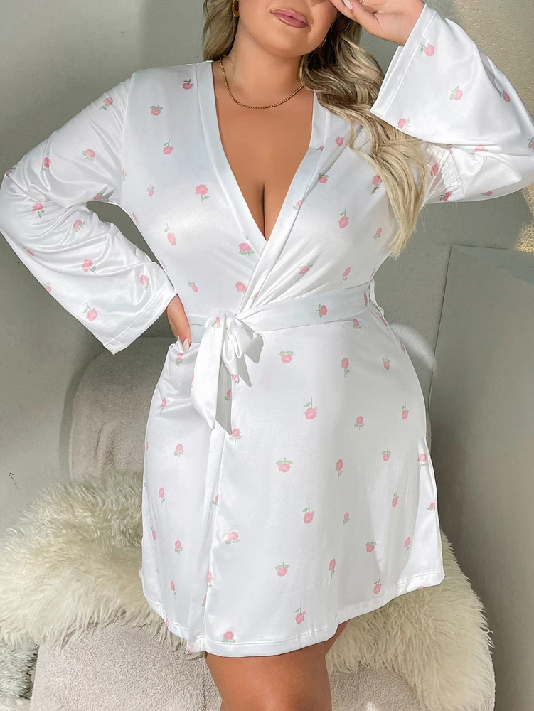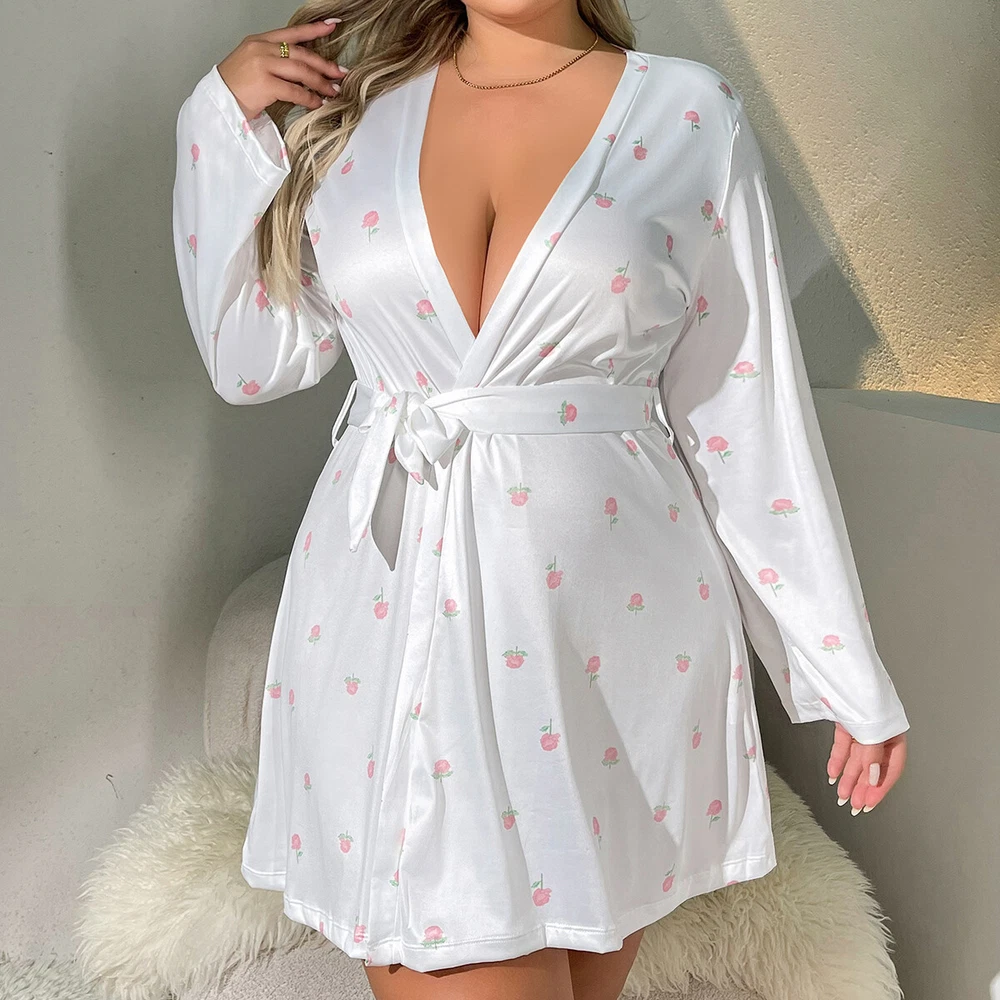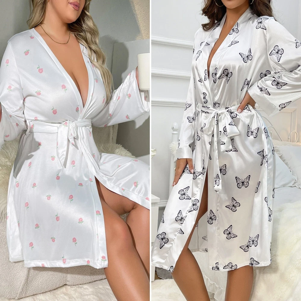 Type: Robe & Gown Set Size Type: Regular Garment Care: Hand Wash Only Neckline: V-Neck Occasion: Glamour Style: Babydoll, Chemise Fabric Type: Satin Theme: Christmas, Designer, Flower, Funny, Holiday, Love, Wedding, Festival, Happy, Dating, Birthday, Gift for her, Valentines Closure: Lace Up Character: Angel, Santa Claus MPN: Does not apply Sleeve Length: 3/4 Sleeve Department: Women Brand: Unbranded Size: S-4XL Pattern: Floral Features: Lightweight Accents: Bow, Embroidered, Ruffle, Strap Season: Fall, Spring, Summer, Winter Material: Imitated Silk + Lace