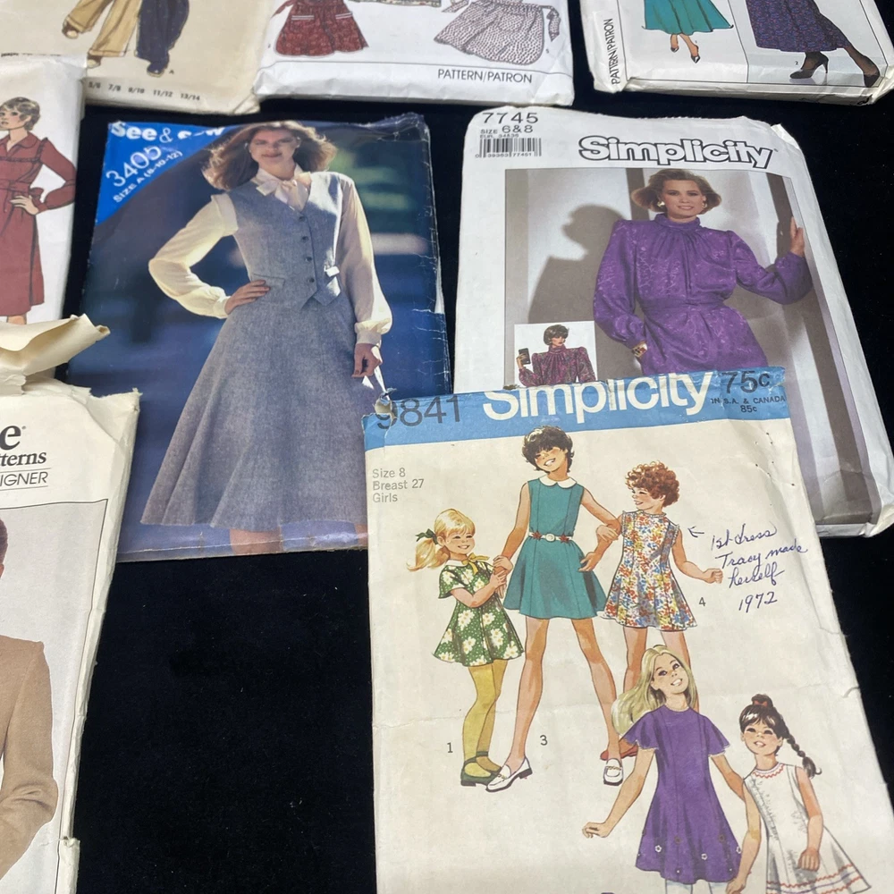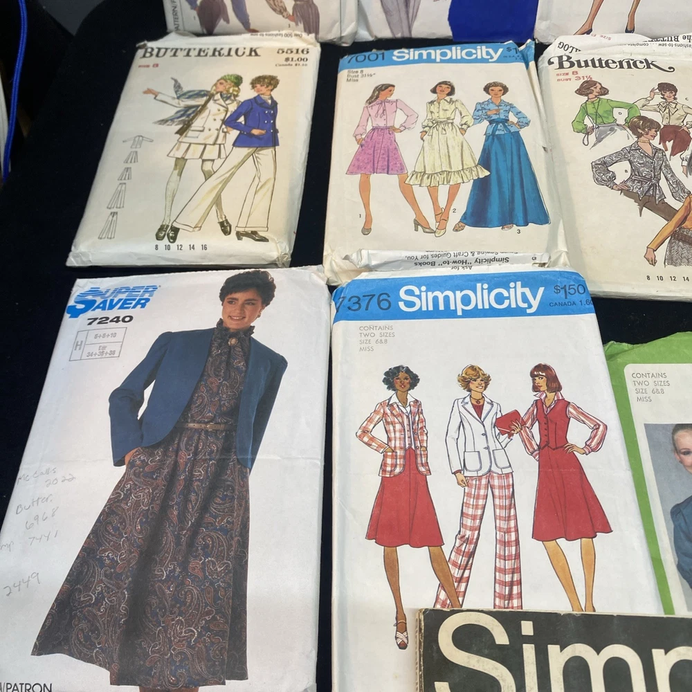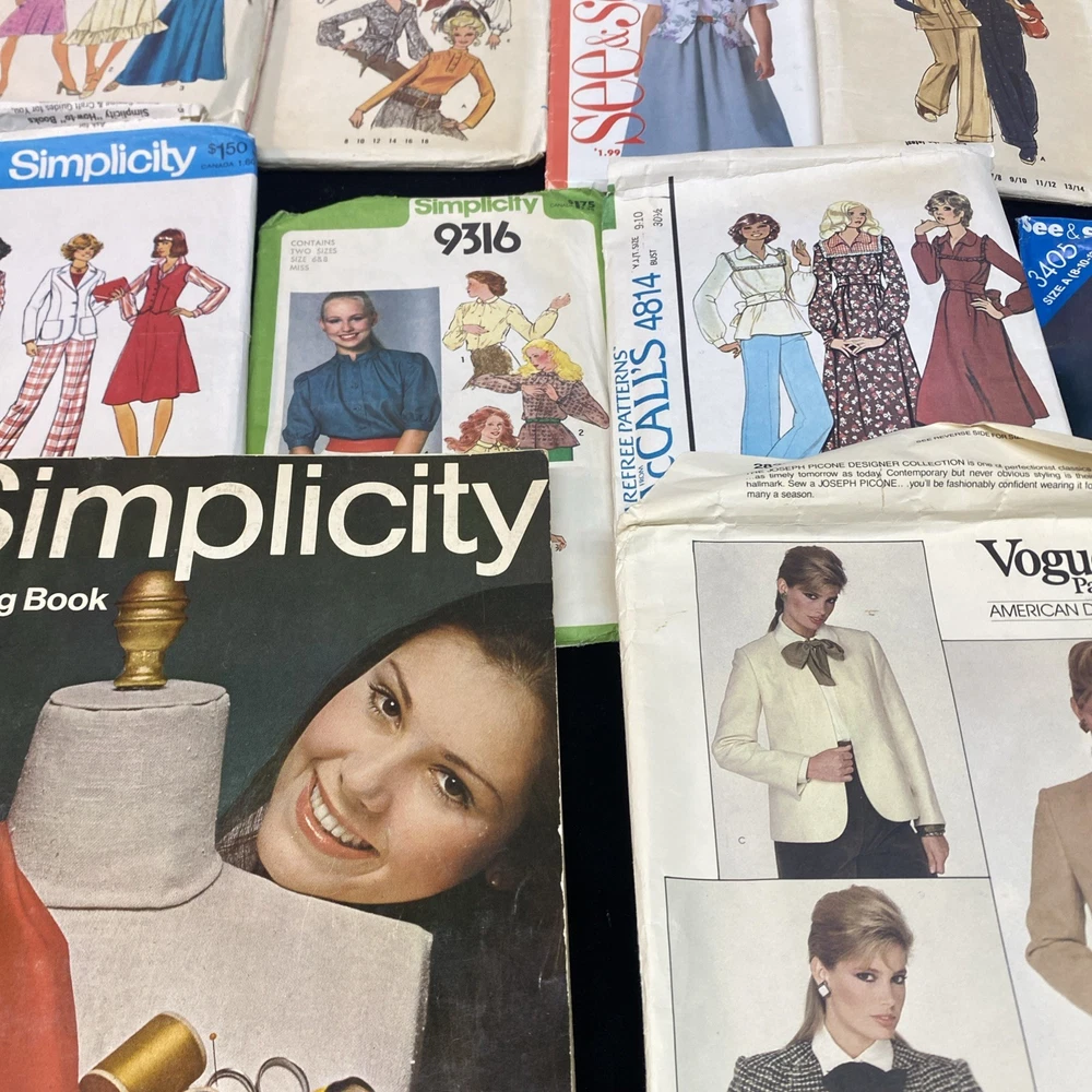 This lot includes 23 women's sewing patterns from well-known brands like Butterick, Simplicity, McCalls, and Vogue. The patterns are a mix of cut and uncut, suitable for adult and teen female sewers. The collection also includes a sewing book for added inspiration and guidance. This variety of patterns offers a diverse range of designs for creating stylish and unique garments.
