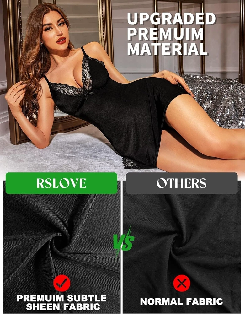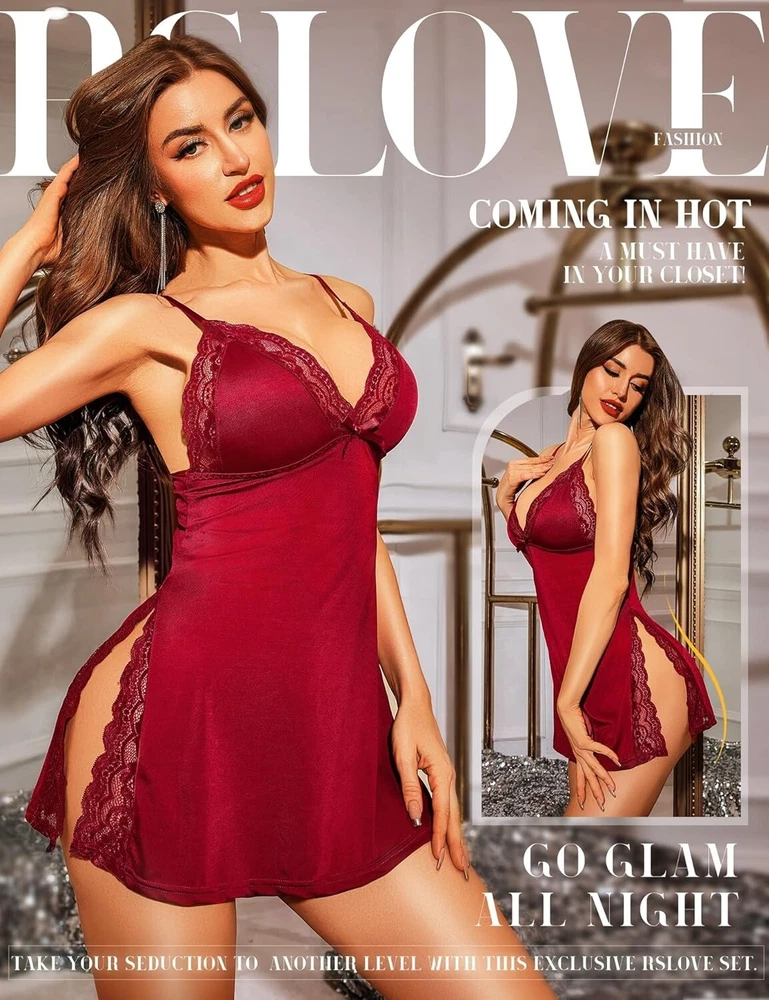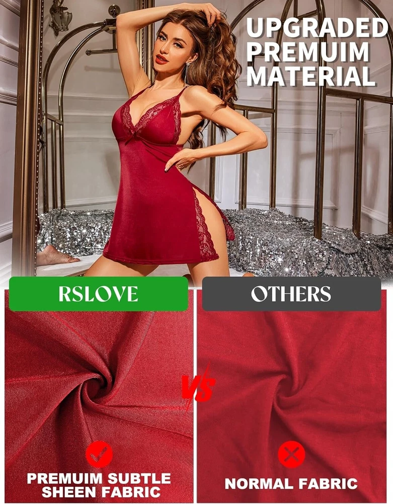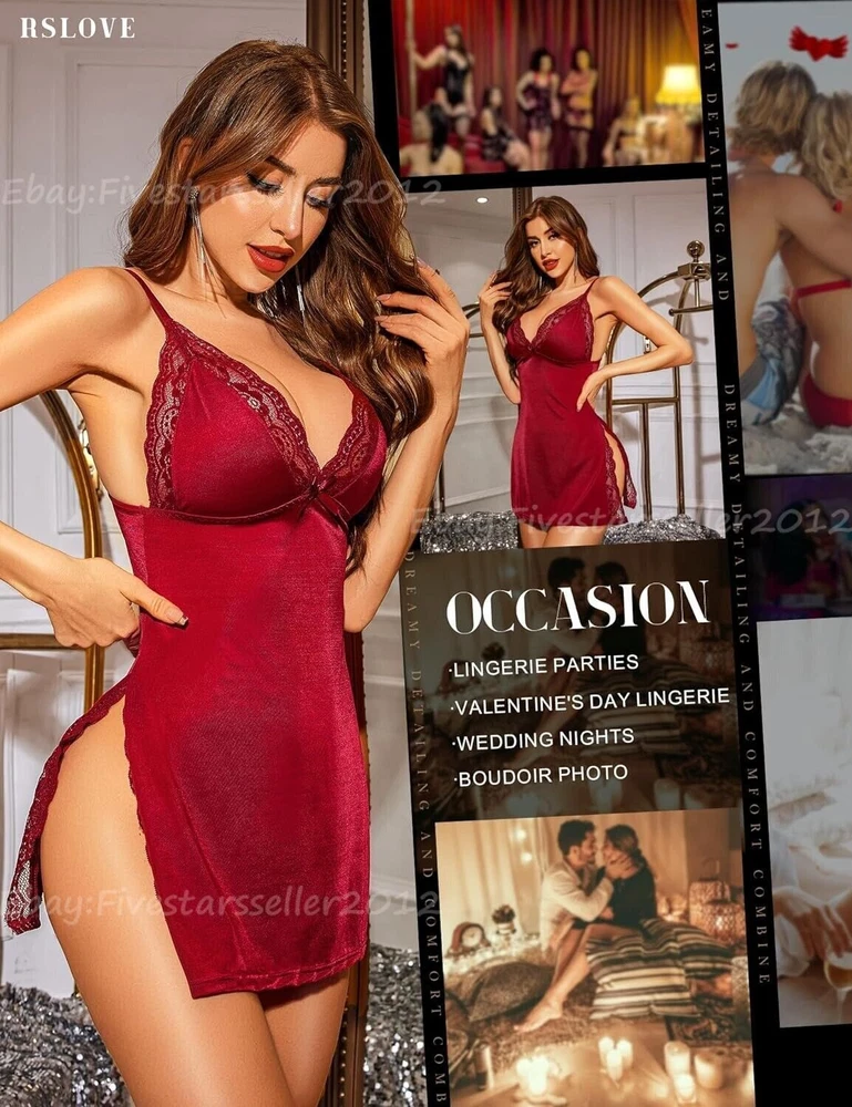 About this item: LUXURY SLEEPWEAR: Crafted from comfortable and breathable fabric, the upgraded material sets itself apart from the ordinary materials in the market. The sexy babydoll fabric is wrinkle-resistant and boasts a subtle sheen that exudes sophistication without being ostentatious. It perfectly complements your skin, making it smoother and more vibrant. This secret weapon from Fivestarssseller2012 will make your charm irresistible and impossible to ignore. OWN YOUR SEDUCTION: The sexy sleepwear with deep V lace trim and tantalizing dual side slits flawlessly showcase the exquisite curves of your hips and legs. The side slits create a mysterious and highly seductive ambiance, where every movement exudes an irresistible allure. Use the sexy nightwear to ignite the fire of desire and infuse special moments with blazing passion. A MUST-HAVE: With adjustable shoulder straps and high elasticity in the fabric, the lingerie dress offers exceptional breathability for a cool and comfortable wearing experience. It feels like a second skin, enveloping you in soft clouds. Whether you wear it for sleeping, lounging at home, or special occasions, it will flawlessly accentuate your body curves, making your charm irresistible and impossible to resist. WARDROBE CHAMPION: Perfect choice for Boudoir Shoots, Wedding Nights, Valentine's Day Lingerie, Bridal Lingerie, Honeymoon trips, Anniversaries, Lingerie Parties, or Beach Outfits. Whether you're looking for a sexy lingerie babydoll, a soft sexy nightgown for sleep, or a stylish outfit, this versatile lingerie nightgown chemise is a must-have item in your wardrobe. PACKAGE: 1x Sexy Sleepwear Lingerie (G-string is not included). Garment care: hand wash