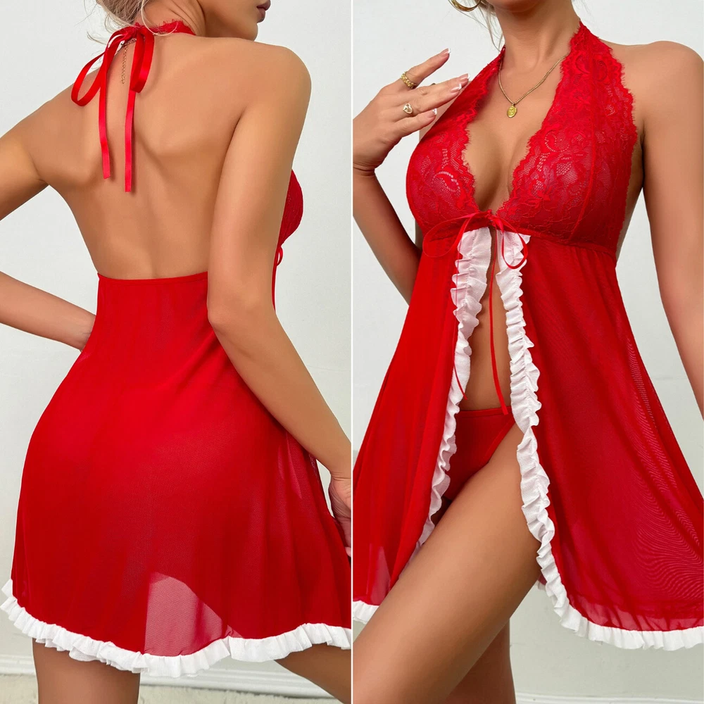 Indulge in your wildest fantasies with this stunning women's lingerie sleepwear set. This babydoll is perfect for a comfortable and relaxing night's sleep, featuring a V-neckline and adjustable straps for the perfect fit. The lightweight lace fabric provides a delicate touch, while the ruffle, strap, bow, and embroidered accents add a touch of elegance and charm. The sleepshirt is designed with a festive theme, perfect for Christmas, Halloween, Valentine's Day, or any other special occasion. The pull-over closure makes it easy to wear and take off, and the polyester and acrylic material require hand wash only for optimal care. This regular-sized sleepwear set is a perfect gift for her, whether it's for a birthday, wedding, or just to show your love and appreciation.