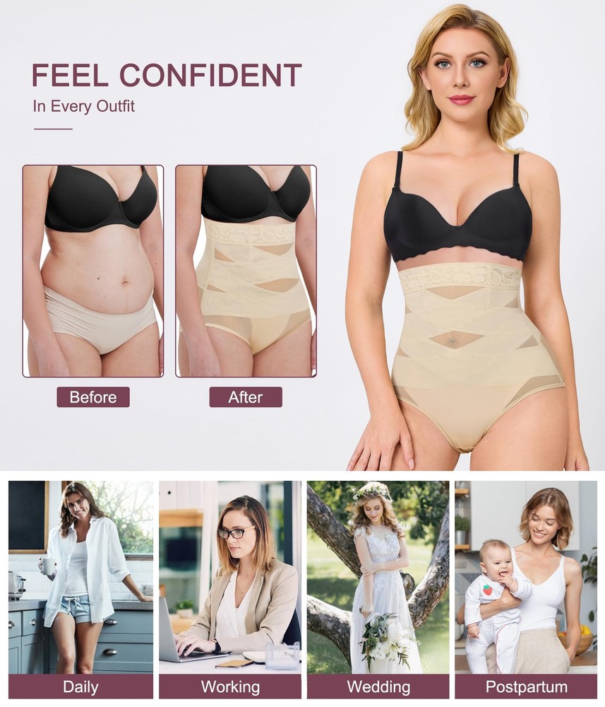 Ultimate Comfort & Flexibility: Our shapewear underwear is crafted from 88% Nylon and 12% Spandex, combining mid-strength mesh with stretchy knitted fabric for a super soft, breathable experience that molds perfectly to your body. Say goodbye to discomfort and hello to all-day wear. Sculpt Your Silhouette: Featuring a high-waisted design with a double-layer cross fabric, this compression underwear women gently compresses unwanted belly fat while enhancing your curves. The C-shaped pleats at the back lift the buttocks, giving you a flattering and perky appearance – instant hourglass shape. No Roll, Just Control: Our shapewear underwear tummy control includes four short steel bones at the waist to prevent rolling or slipping, ensuring slimming underwear for women stays put while you move. No more adjusting throughout the day – enjoy secure support that keeps you confidently poised. Adaptable for Any Occasion: High waisted shapewear tummy control is perfect for work, leisure, exercise, or formal events, this fupa control shapewear is designed for all-day comfort without compromising your style. Elevate your outfit effortlessly while feeling your best in any setting. Perfect Gift for the Figure-Focused: Treat yourself or a loved one with this essential shapewear tummy control underwear. Ideal for any woman who loves to maintain her shape, shapewear butt lifter tummy control makes a fabulous gift for birthdays, holidays, or just because – because every body deserves to feel gorgeous.