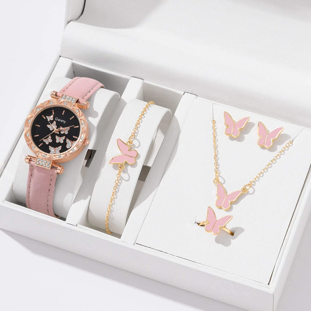 Women's Simple Butterfly Design Quartz Watch with Imitation Leather Strap Product information: Color: black, brown, pink, red, beige black butterfly suit (without box), black black butterfly suit (without box), Brown black butterfly suit (without box), pink butterfly suit (without box), Red Butterfly suit (without box), White Butterfly suit (without box), Applicable people: Female Movement type: Quartz Mirror material: ordinary glass mirror Buckle style: pin buckle Watch-buttom material: Alloy Strap material: imitation leather Packing list: 1* Watch / Watch+necklace+ring+earrings+bracelet Product Image: Women's Simple Butterfly Design Quartz Watch with Imitation Leather Strap Product information: Color: black, brown, pink, red, beige black butterfly suit (without box), black black butterfly suit (without box), Brown black butterfly suit (without box), pink butterfly suit (without box), Red Butterfly suit (without box), White Butterfly suit (without box), Applicable people: Female Movement type: Quartz Mirror material: ordinary glass mirror Buckle style: pin buckle Watch-buttom material: Alloy Strap material: imitation leather Packing list: 1* Watch / Watch+necklace+ring+earrings+bracelet Product Image: eBay integration by