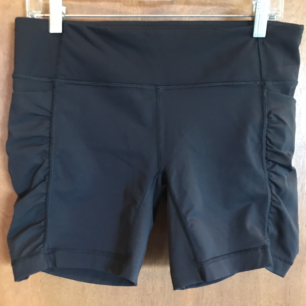 Hard to find. Women’s size 10. Lululemon Athletica. Nylon Lycra blend. Black in color. 2 side pockets which are perfect to hold keys or phone. Continuous drawstring. Pull on. Inseam is 6.5”. Waist measures 15 3/4” laying flat. Comes from a clean, smoke free home.