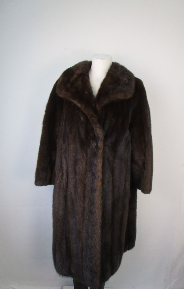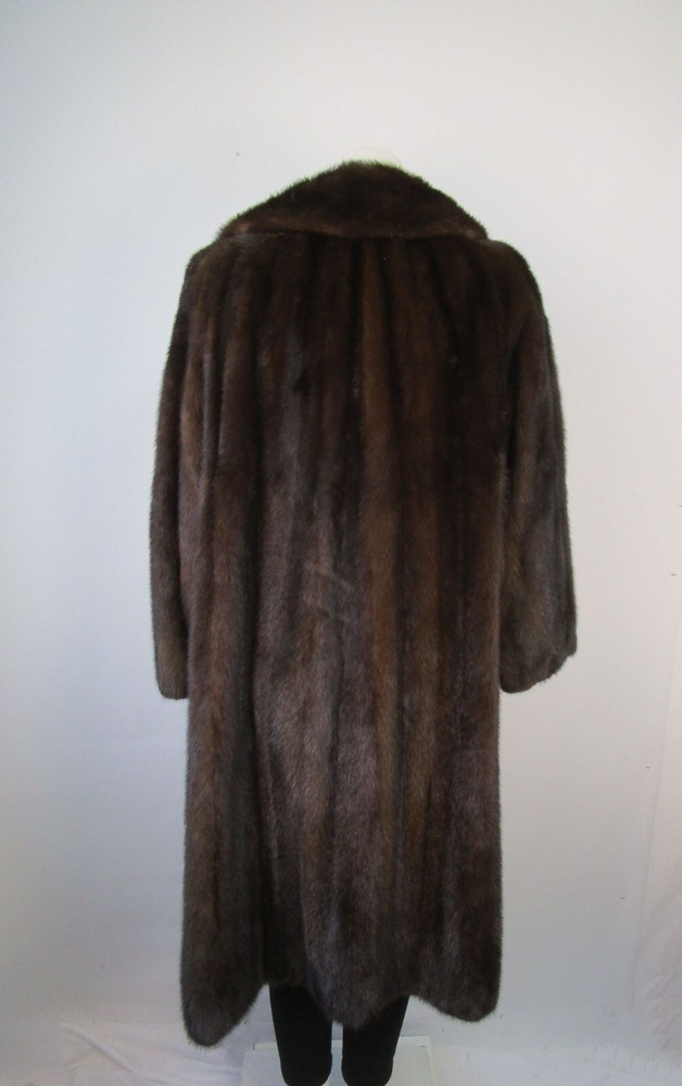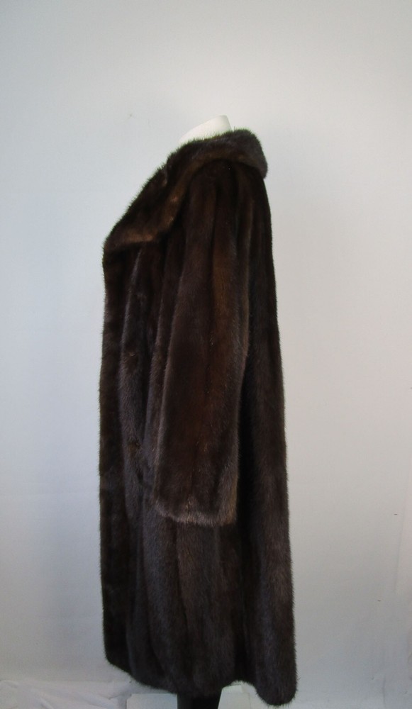 I tem Description: S uperbly soft and luxurious Canadian mink fur coat for women. Full top quality Canadian mink fur pelts, warm and cozy shawl style mink fur collar, front furrier closures , side slit pockets and satin lining complete the look of the this beautiful fur coat. Fur and lining in MINT PLUS condition. Cleaned and glazed. SIZE: 10/12 Chest all around closed 45" SLEEVES: 27" Adjustments Free of Charge! LENGTH: 43"