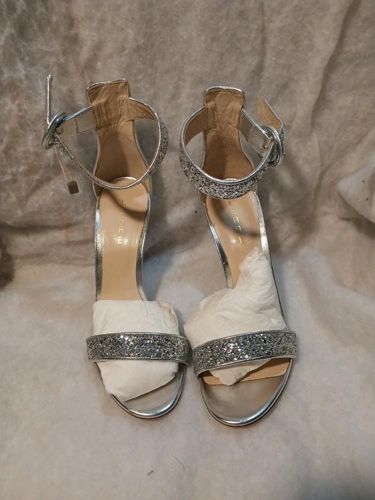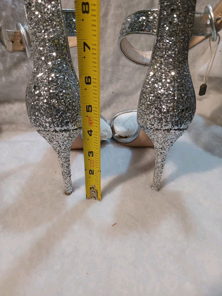 Elevate your style with these stunning Lerre glitter heels. These high stiletto heels feature an almond toe and slip-on closure for easy wear. The ankle strap adds a touch of sophistication, making them perfect for formal occasions, parties, or even weddings. The silver color and glittery finish make them the perfect statement piece to complete your look. Made with a leather outsole, these heels are sure to last. Don't miss out on the chance to add these gorgeous heels to your wardrobe.
