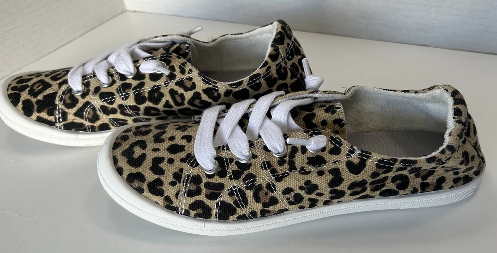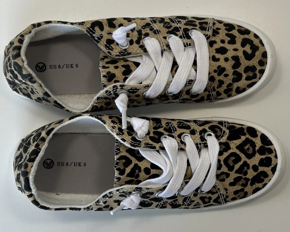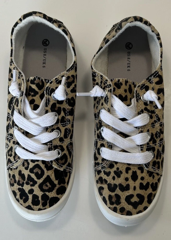 Women's Size 8 Cheetah Print - Slip on - Sneakers Shoes w No Tie Laces Pre-Owned - Please see pictures for details