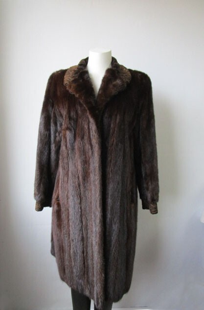 MODA FURS Gorgeous Mink Fur Coat Top quality natural dark pastel color Canadian Mink fur Coat. Warm and cozy full SWAKARA fur collar and trims, side pockets, front furrier closures, and satin lining complete the look of this stylish fur coat. Fur and Lining in MINT Condition. Professionally Cleaned and Glazed. SIZE : 8 Chest Closed 42" LENGTH : 41 " SLEEVES: 30 "
