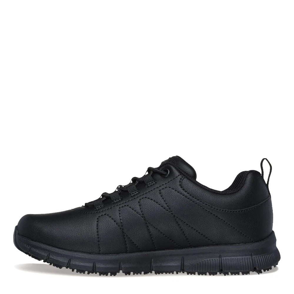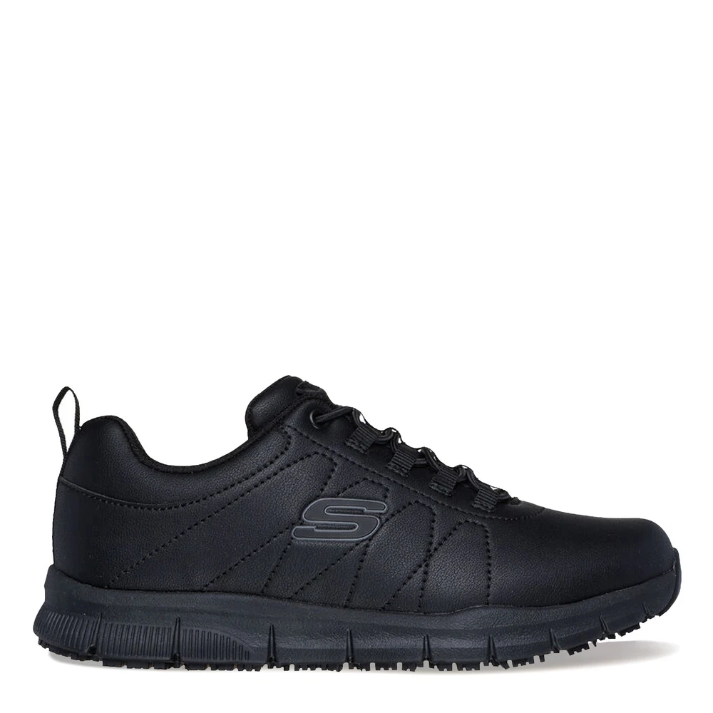 Store Name or Logo Here Our eBay Store About Us Contact Us Add to Favorite Sellers ( Women's Skechers, Work: Nampa - Beja Sneaker - Wide Width 49.95 Stay confident and comfortable on the job with Skechers Work: Nampa - Beja sneakers. Featuring a smooth synthetic upper with stretch laces, these slip-resistant shoes offer a cushioned Skechers Memory Foam insole and a shock-absorbing lightweight midsole, ensuring all-day support and safety, including Electrical Hazard (EH) protection Smooth synthetic upper Soft fabric shoe lining is moisture wicking Padded collar and tongue Slip-on fashion sneaker style with stretchy bungee laces Air cooled memory foam cushioned insole Shock-absorbing flexible lightweight midsole Electrical Hazard (EH) safe design tested ASTM-F2892 Slip-resistant traction outsole ) Product Details Color Black Height Length UPC This is the footer. More links or text can go here.