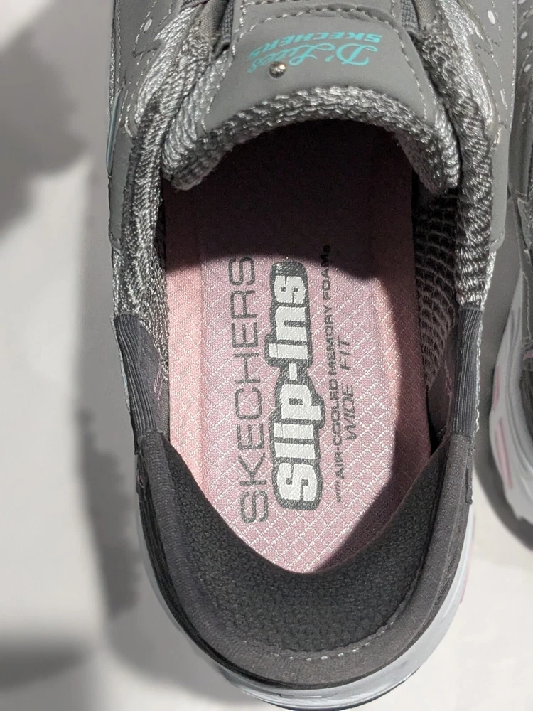 Elevate your activewear game with these Skechers Slip-ins D'Lites sneakers. Designed for women, these sneakers are perfect for casual wear and workwear too. The slip-on closure makes them easy to wear and the gray color complements any outfit. These sneakers come in size 8.5 wide and are ideal for all seasons, be it winter, summer, fall, or spring. The Skechers brand guarantees quality and durability, and with a style code of 150238, you can be sure that you're wearing the latest in athletic footwear. Get these sneakers today and step up your shoe game!
