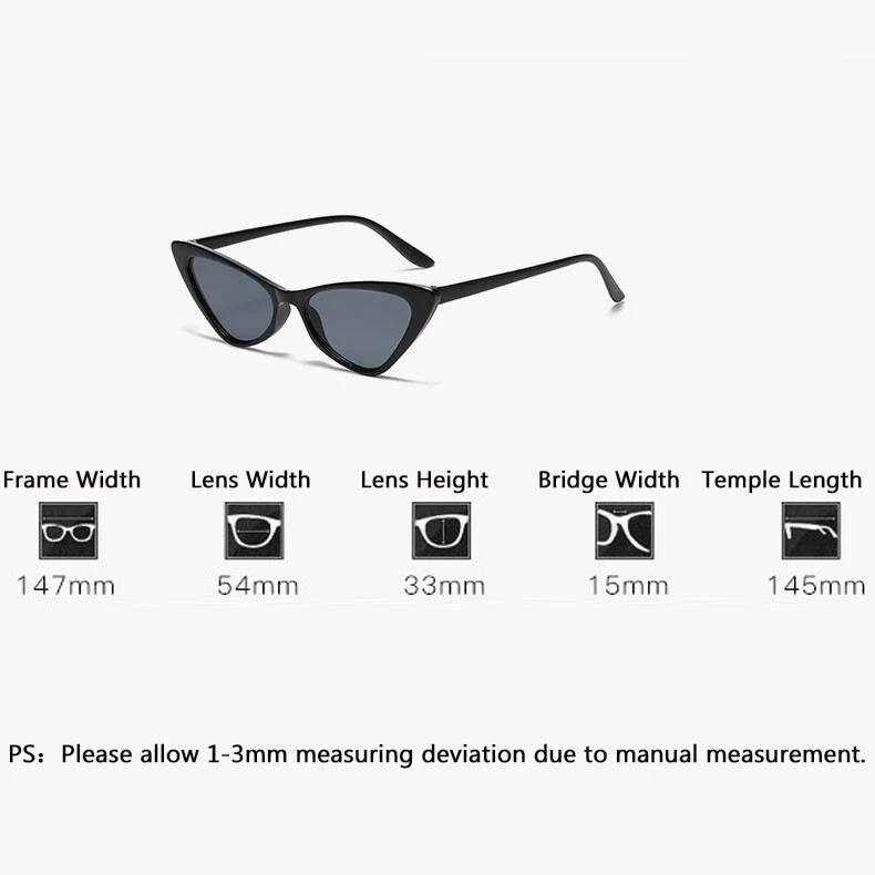 Women Cat Eye Sunglasses Fashion Small Frame Outdoor Driving Party Shade Glasses Description Brand: FELRES Frame Material : Plastic Lens Material: Plastic Visible Perspective Rate: 99% Anti-UV rating: UV400 Whether polarized : No Gender: Women Lens width: about 54 mm Lens height: about 33 mm Bridge: about 15 mm Frame Width: about 147 mm Temple Length : about 145 mm Package included: 1*Sunglasses(Not include boxes and other accessories) Note: 1. Due to the different monitor and light effect, the actual color of the item might be slightly different from the color showed on the pictures. Thank you! 2. Please allow 1-3mm measuring deviation due to manual measurement. Country/Region of Manufacture China Brand FELRES MPN Does Not Apply Type Sunglasses Model 7099 Frame Material Plastic Lens Material Plastic Department Women Style Cat Eye Theme Classic, Designer, Outdoor, Sports Lens Width 54 mm Lens height 33 mm Bridge Width 15 mm Frame Width 147 mm Temple Length 145mm UV Protection UV400 Features Reflective Lens Technology Anti-Reflective Frame Color Multicolor Personalized No