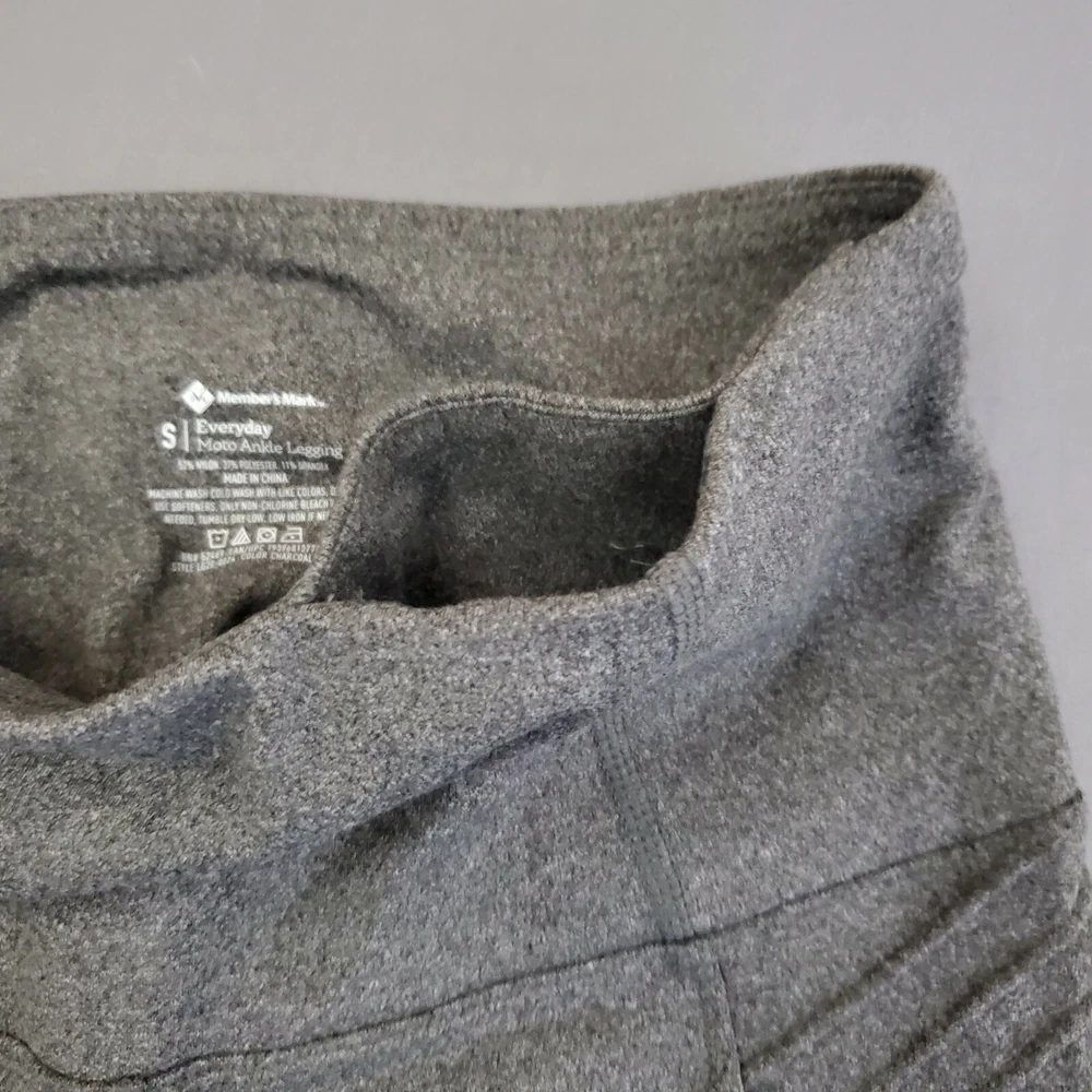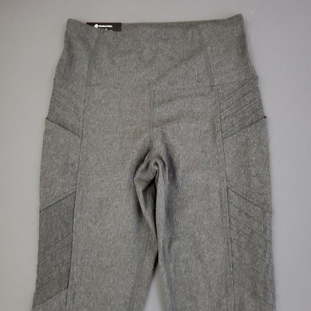 Pattern: solid Color: Gray Material: Cotton Features: Pockets Occasion: Activewear Fit: Athletic Size Type: Regular Inseam: 25.5 in Fabric Type: nylon Closure: Pull On Brand: Member's Mark Compression Area: Leg Theme: Athleisure Style: Cropped Waist Size: 25 in Size: S Leg Style: Skinny Type: Pants Performance/Activity: Running & Jogging, Walking, Yoga Department: Women