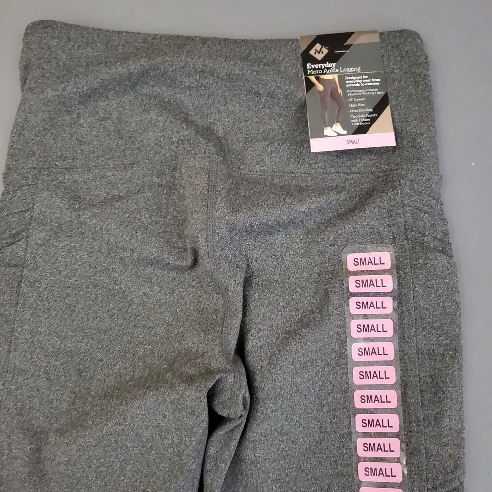 Women's Small Moto Ankle Leggings with Pockets - Medium Gray