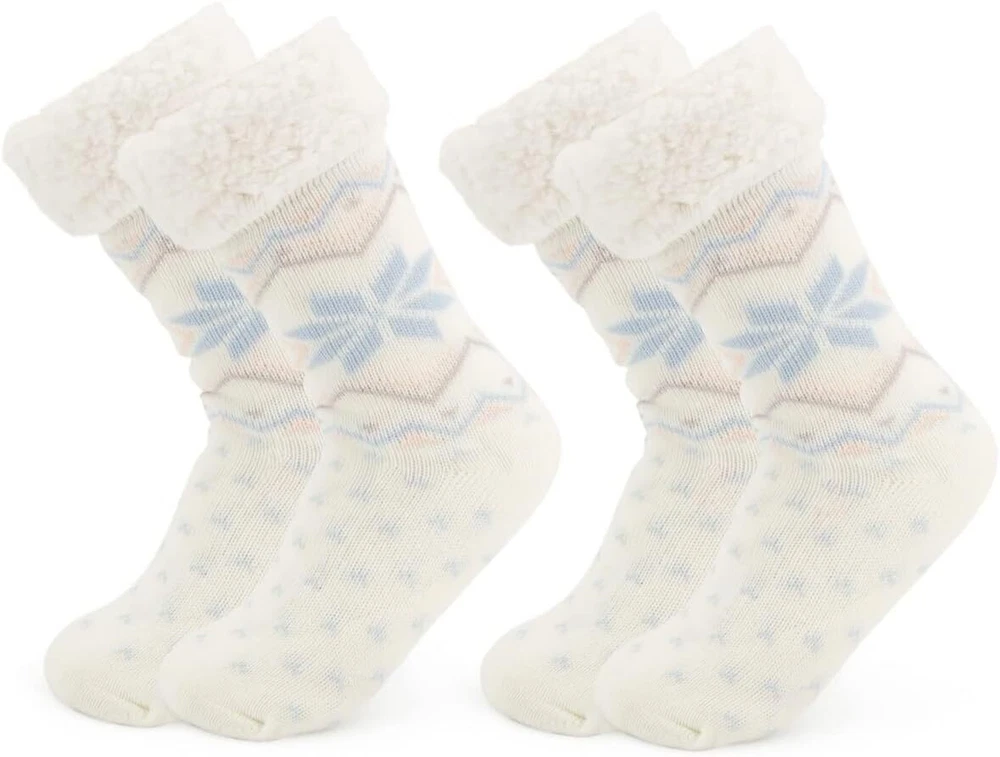 Women's Sock Slippers - 2-Pack Fuzzy Non-Slip Sherpa Lined Thermal Socks
