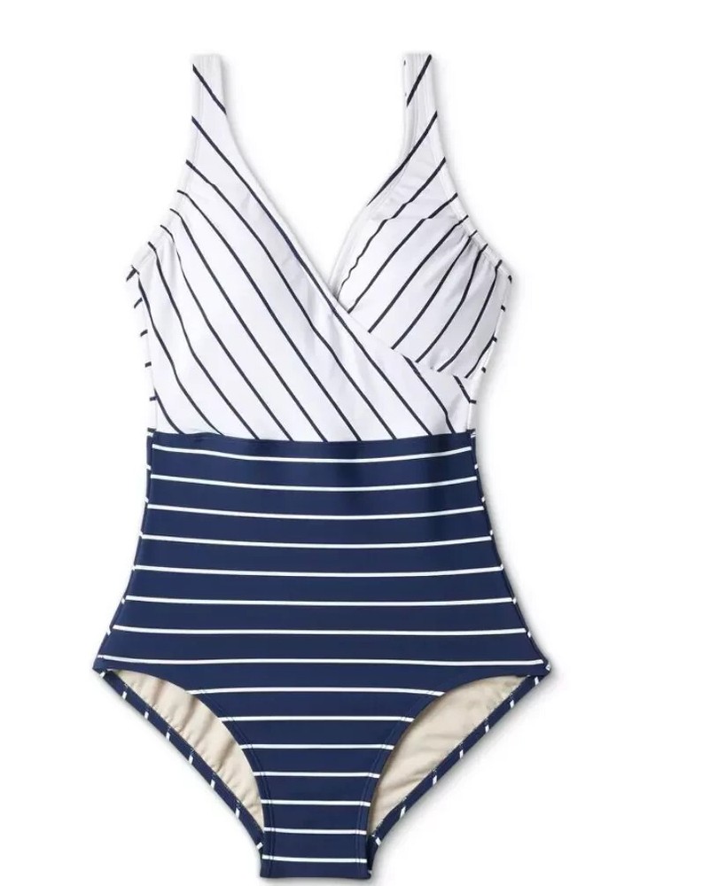 Time and Tru coral ruched one-piece swimsuit for women size S 4-6