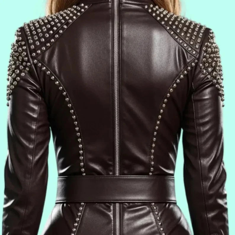 Turn heads and own the spotlight with this bold and edgy studded leather jumpsuit. Perfect for performers, fashion risk-takers, and anyone with a taste for high-impact style, this full-body catsuit is designed with premium black leather, silver stud embellishments, and a figure-flattering fit. Ideal for concerts, music videos, clubwear, photo shoots, festivals, and biker events, this piece combines punk rock attitude with runway-worthy detail. ✨ Features: Material: Premium genuine Cowhide Leather Color: Classic black with silver-tone studs Design: Long-sleeve, fitted catsuit with deep V-neckline Closure: Full-length front zipper for easy wear Belt: Matching leather belt with metal buckle for a cinched waist Details: Studded shoulder accents for extra edge Fit: Slim, tailored fit to enhance curves Occasions: Perfect for punk rock shows, biker events, cosplay, stage performances, photo shoots, and nightlife fashion 📏 Available Sizes: XS, S, M, L, XL, 2XL, 3XL, 4XL (See size chart in listing images for exact measurements.)