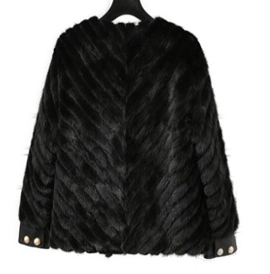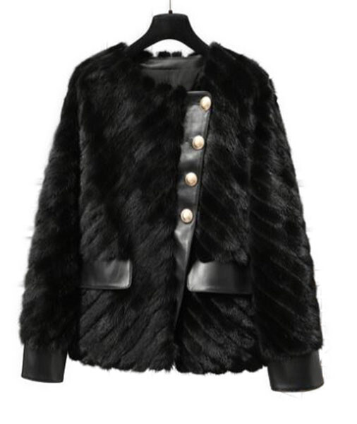 I tem Description: Stylish black mink fur jacket coat with black leather trims. Gold color button closures and details, front pockets and satin lining complete the look of this beautiful mink fur jacket Unbeatable Price. SIZE : S M L LENGTH : 23 "