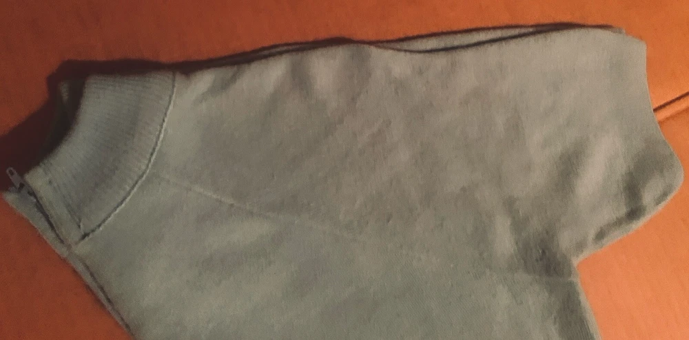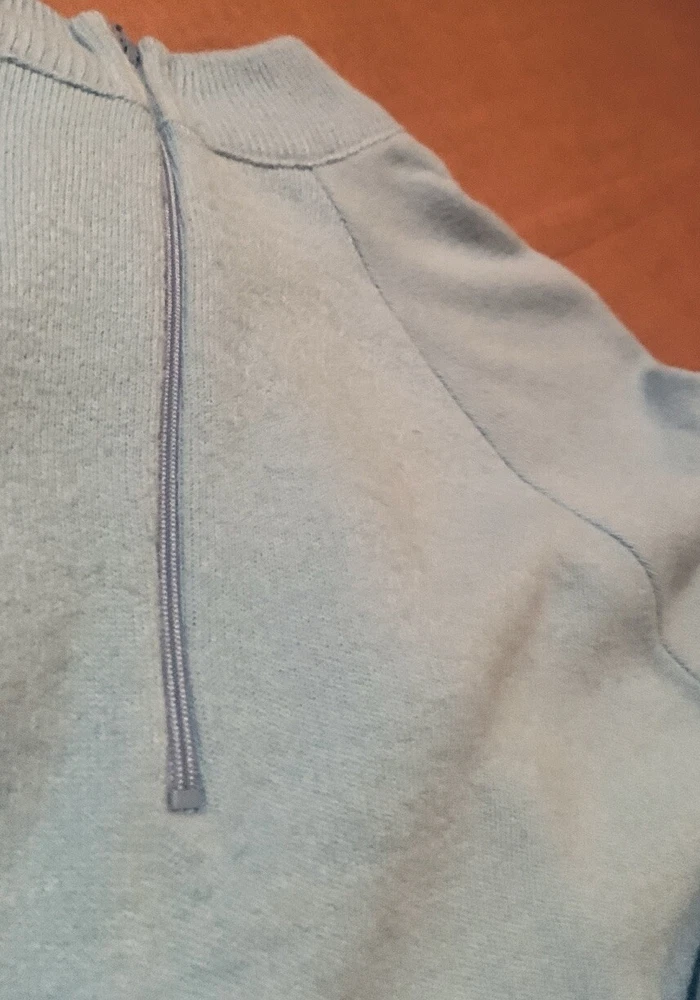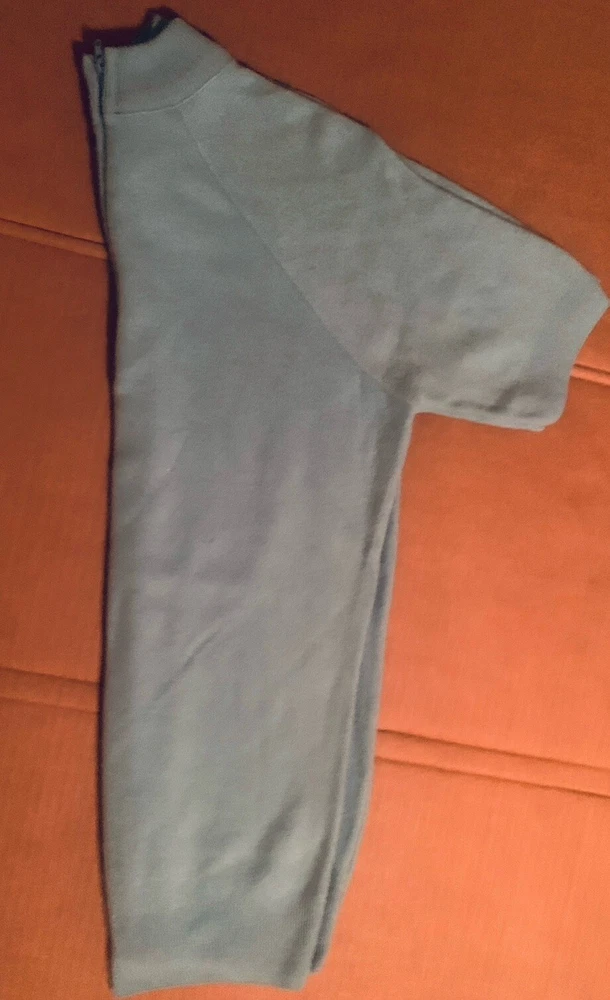 Women’s Sz M Soft Baby Blue, Short Sleeved Pullover Sweater, Back Zip Closure.