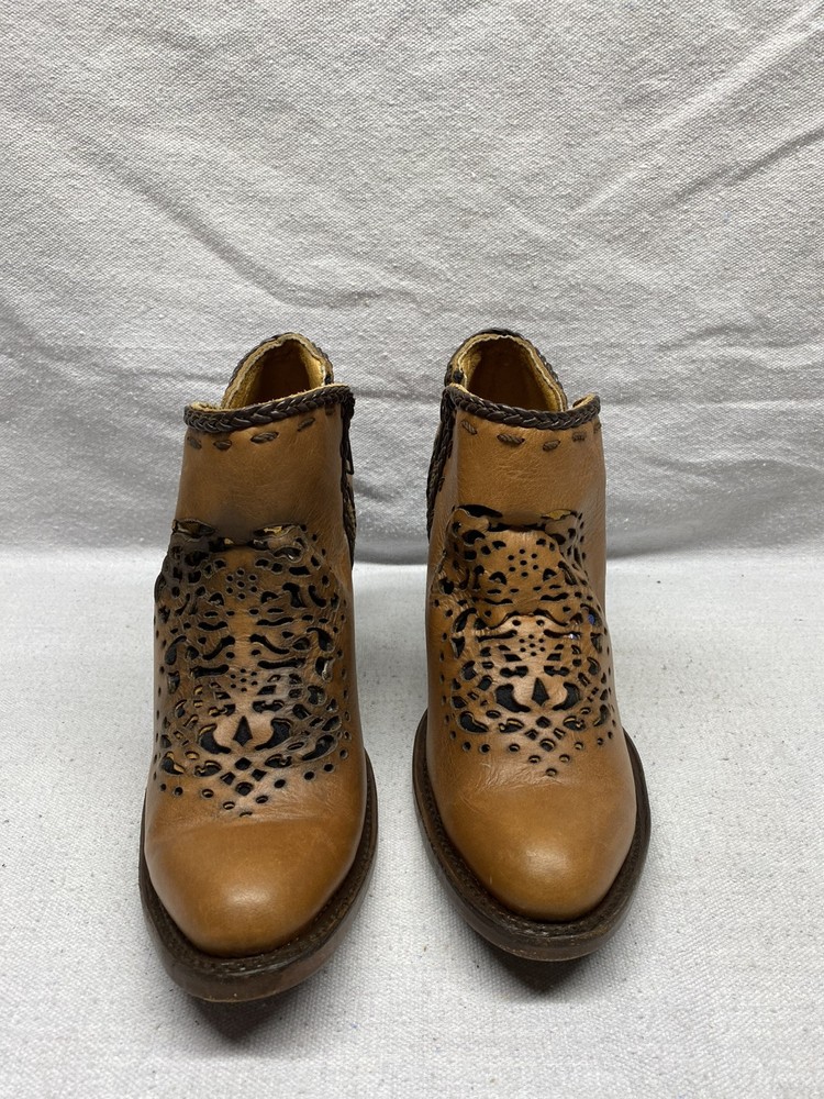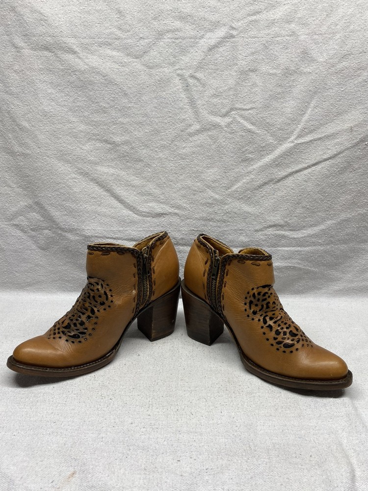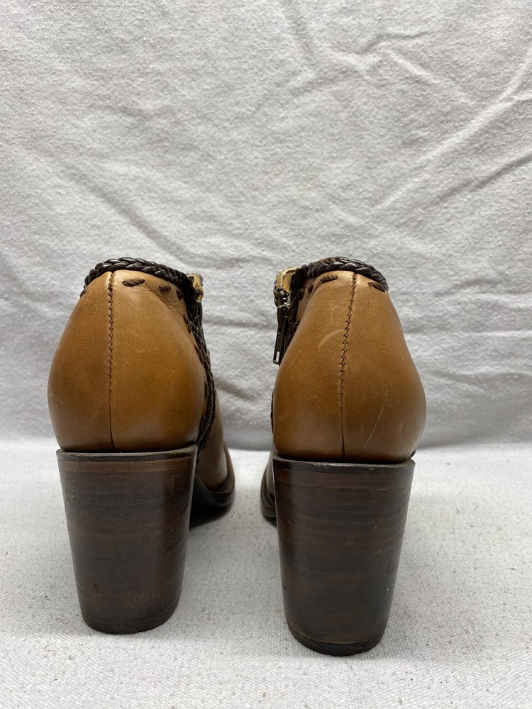 Women's The West Sun 9.5 B Ankle Zip Up Brown Leather Heels