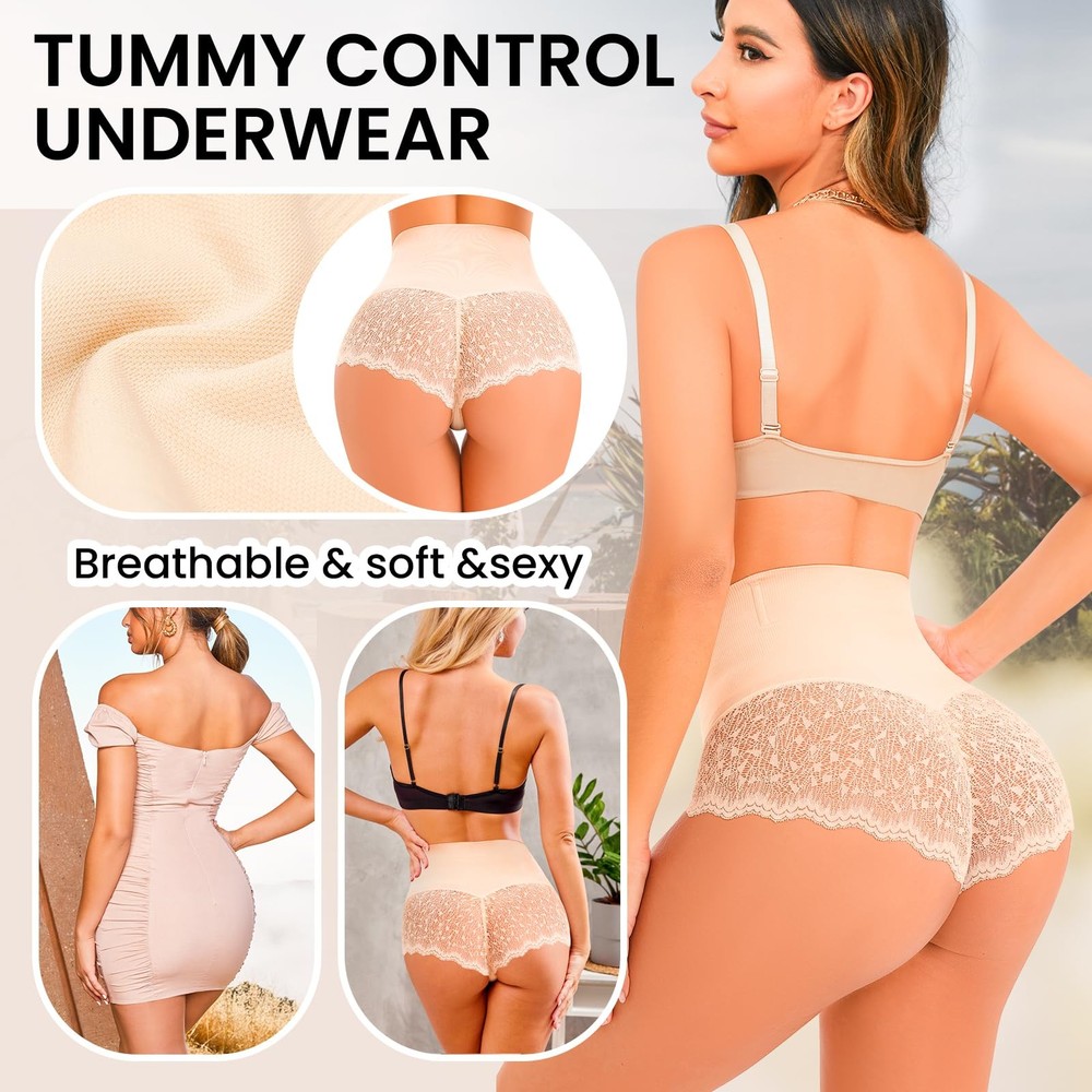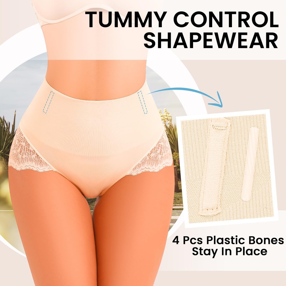 Tummy Control Shapewear Panties for Women:Tummy control underwear can help you say goodbye to the trouble of waist and belly fat. Seamless tummy control underwear for women can give you a soft and smooth curves,make your body like a hourglass figure.It could bring a comfortable experience when you wear the women control panties.Shapewear underwear creates a slim female figure for you Plastic Bones Design & No slip and Rolling Down:Our waist shapewear panties is different from others shapewear. We considering the underwear for women is easy to rolling down,so our tummy control panties is designed four plastic bones,it can prevent rolling down,and keep it always stay in right place.Tummy control panties for women make your body perfectly all the time Seamless Shaping Underwear for Women:Shapewear panties is made of Nylon+Spandex fabsirc,which is soft and breathable,Seamless design no panty line,and makes it invisible underneath any types of clothes, makes you feel silky and smooth,shaper panties make you more sexier for any occasion Sexy Lace Panty Shaping:Our women's shapewear control panties design can tighten and lift your buttock naturally,give you the curves what you want.The design makes your butts look bigger,sexier,more beautiful. Lace sides give you more feminine.High quality fabric breathable and comfortable suitable to be weared during all seasons Tummy Control Shapewear For Any Occasion:Women's high waist seamless body shaper tummy underwear Invisible & Comfortable fits any occasions. Slimming your tummy perfect under any types clothes include casual outfits and wedding dresses or gowns. Girdle panties is suitable if you want to show off your hourglass figure under a revealing dress