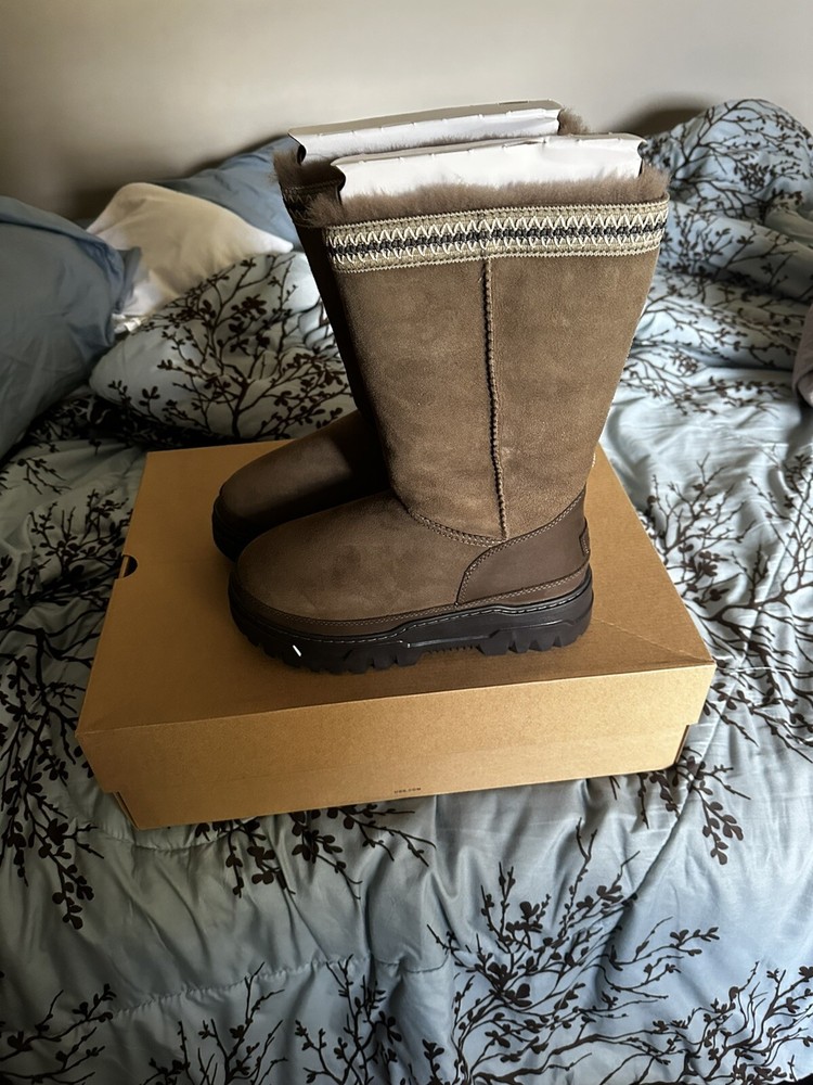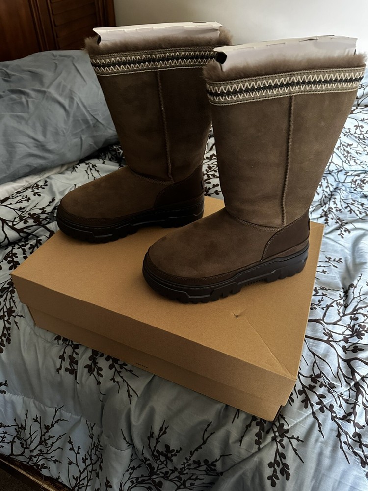 Elevate your shoe game with these stylish UGG boots in size 9 for women. Crafted from high-quality materials from Australia, these boots offer unparalleled comfort and durability. The brand UGG is synonymous with quality and style, making these boots a must-have for any fashion-forward woman. Perfect for any occasion, these boots are a great addition to any wardrobe. Whether you're running errands or going out with friends, these UGG boots will keep your feet warm and cozy all day long. Don't miss out on this opportunity to add a timeless piece to your collection.