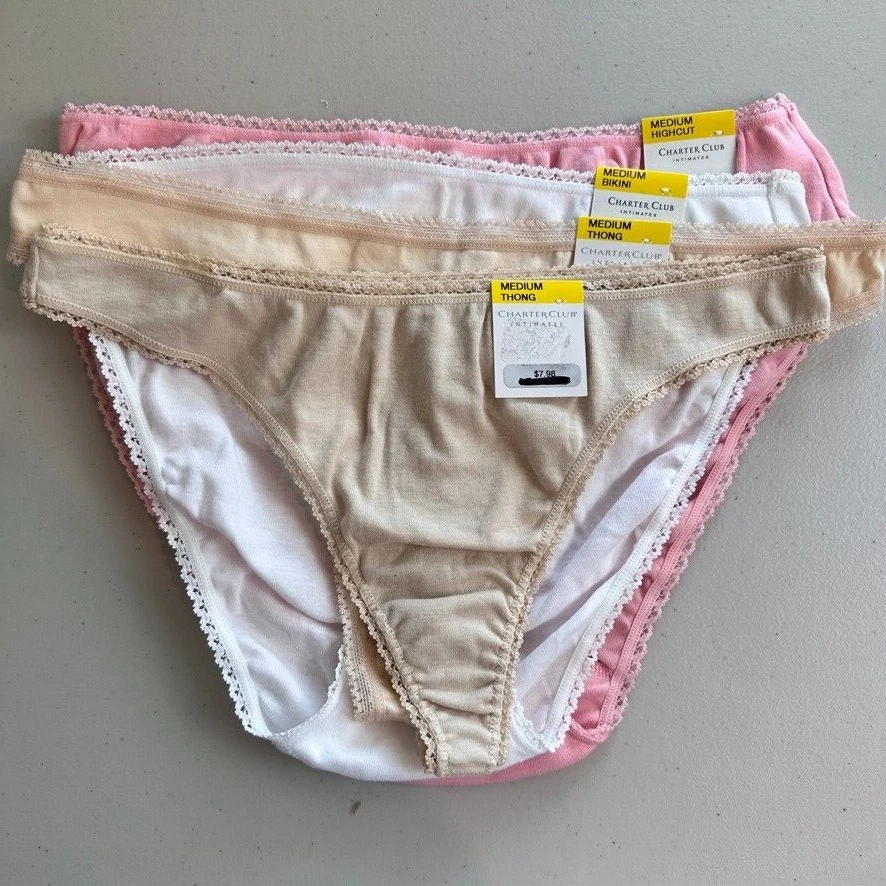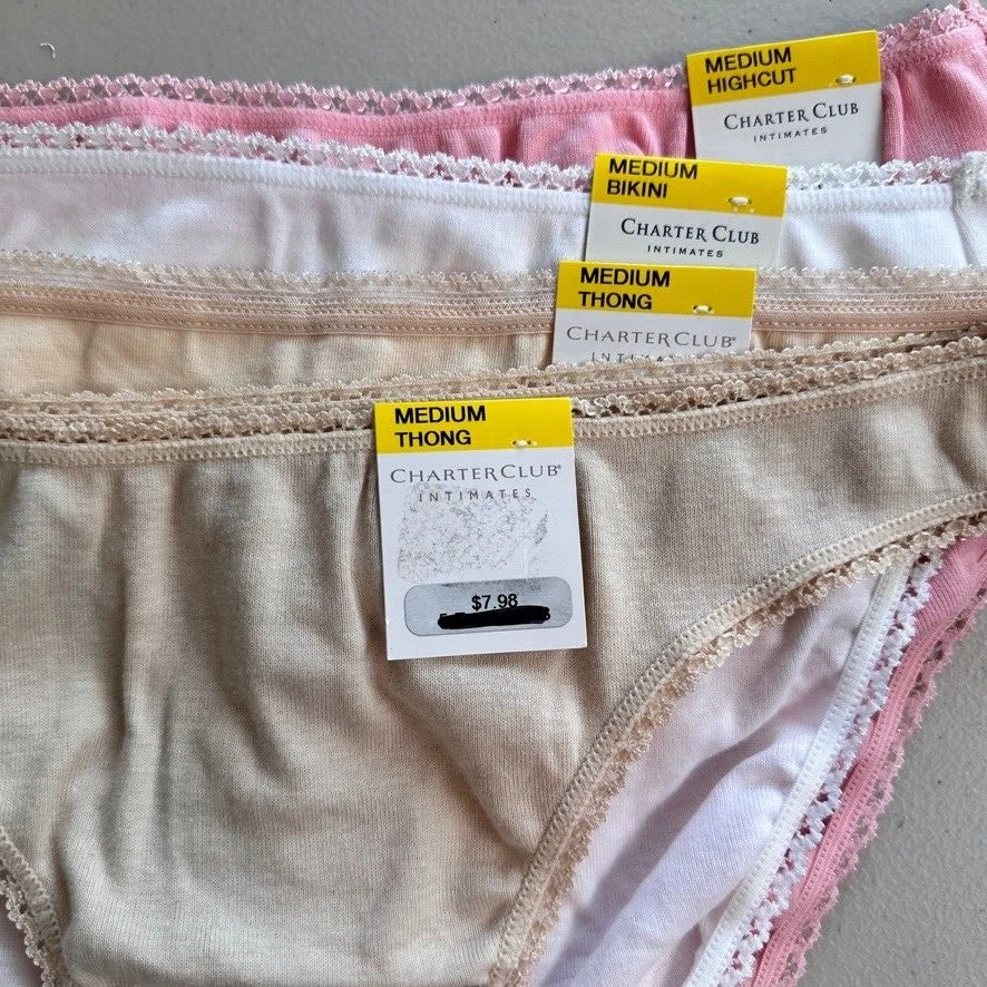 Womens Underwear Size M Charter Club 4pk Assorted Panties New with tags Items are sealed after photos. We cannot check additional measurements for you, but we do have free returns You cannot combine coupons with offers See all photos for description please We store our items in a pet and smoke free environment Shipping and Return details We ship daily and have free returns. No questions asked We can combine shipping or send a partial shipping refund We mail our items with tracking number for confirmation
