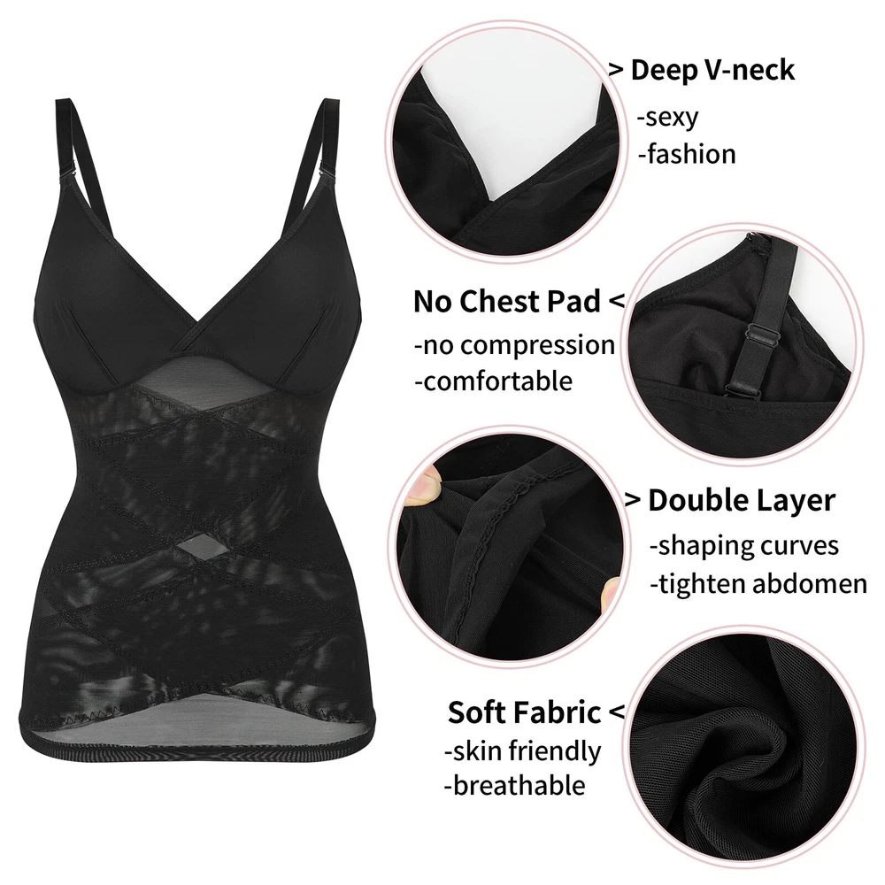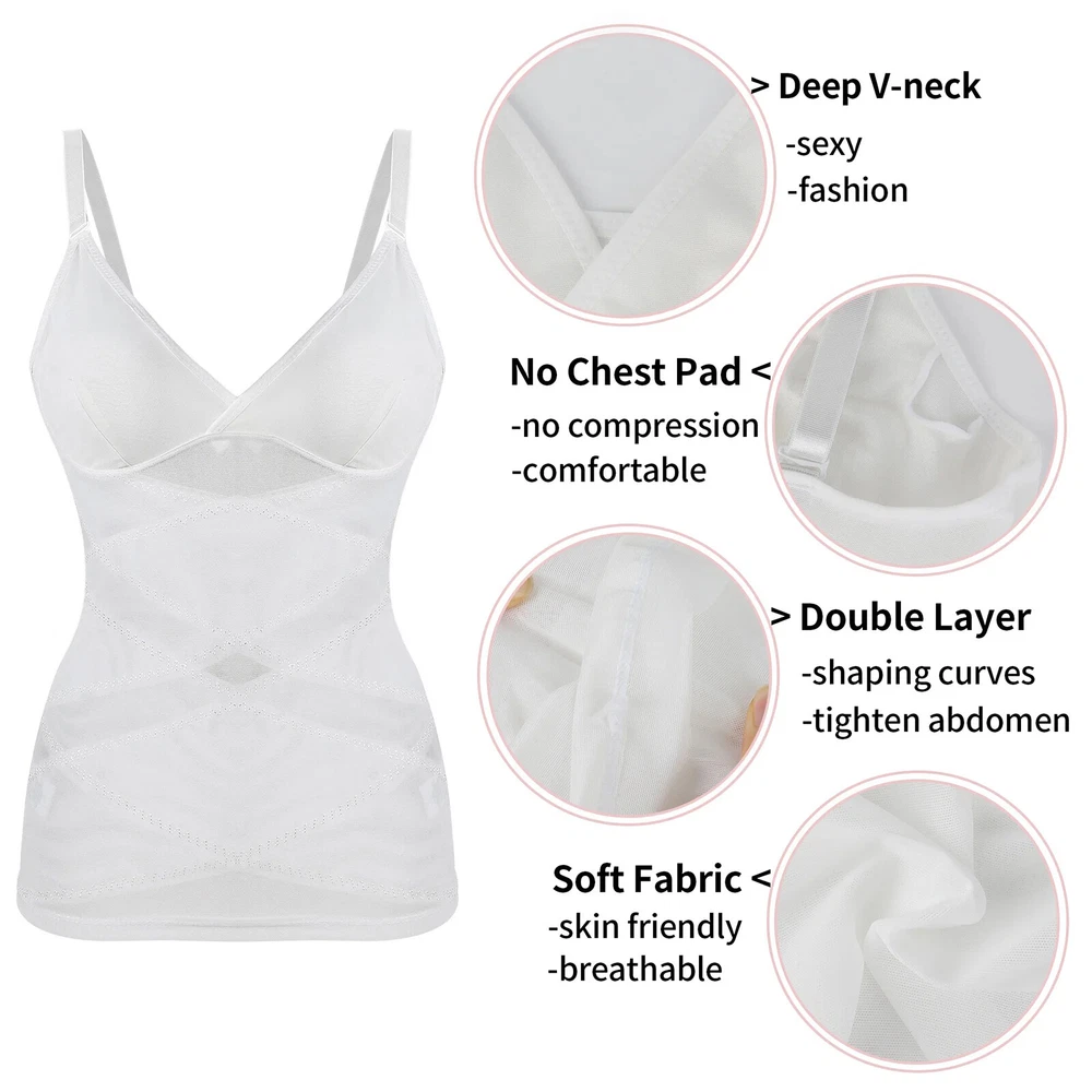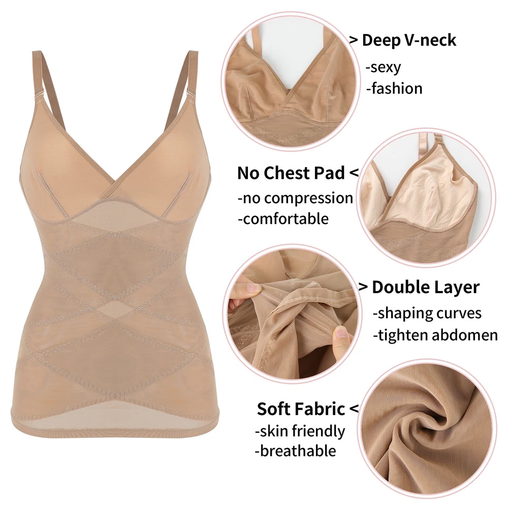 This camisole is a game-changer! The compression is firm but comfortable, smoothing everything without feeling restrictive. The V-neck is flattering, and the fabric breathes well—no sweating or rolling down. Perfect under clothes or even on its own. Stays in place all day and holds its shape wash after wash. Love that it’s seamless and doesn’t dig in. Great quality for the price—definitely buying more colors! Fast shipping and hassle-free returns make it a win.