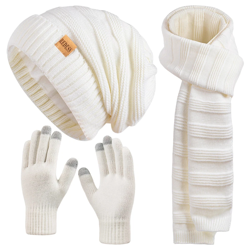 Women’s Winter Beanie Hat Scarf Set with Touchscreen Gloves Warm Knit 3-Piece