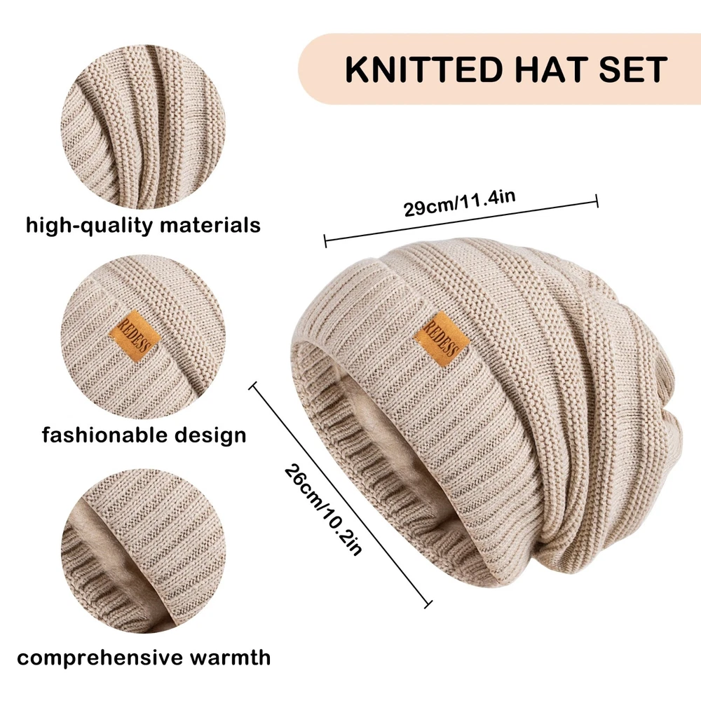 ❄️ Women’s Winter Knit Hat, Scarf & Gloves 3-Piece Set – Thick Warm Lining, Fashion Solid Colors Stay warm, stylish, and comfortable all winter long with this Women’s 3-Piece Winter Knit Set , including a cozy beanie hat , matching scarf , and warm gloves . Designed with soft, thick lining and high-quality knit craftsmanship, this set provides excellent protection against cold weather while adding a fashionable touch to your everyday outfits. ⭐ Key Features 🔥 Thick & Warm Inner Lining Each piece is made with soft, insulating polyester knit to keep you warm during cold winter days. 🧶 High-Quality Knit Craftsmanship Durable knitting ensures long-lasting wear, comfort, and flexibility. 🎨 Multiple Color Options Choose from a variety of solid colors to match your winter wardrobe. 👩 Designed for Women Fashionable winter accessories suitable for daily wear, outdoor activities, commuting, and travel. 👗 Stylish & Practical Perfect for keeping warm while maintaining a chic and elegant winter look. 📐 Product Specifications Item Type: Scarf, Hat & Glove Set (3 Pieces) Material: Polyester Craft: Knit Pattern: Solid Color Gender: Women Department: Adult Style: Fashion Winter Wear Origin: USA 📦 Package Includes 1 × Winter Knit Beanie Hat 1 × Matching Scarf 1 × Pair of Warm Gloves 💯 Return & Refund Policy We offer free returns or a full refund for any item that arrives damaged, defective, or not as described . Your satisfaction is our priority.