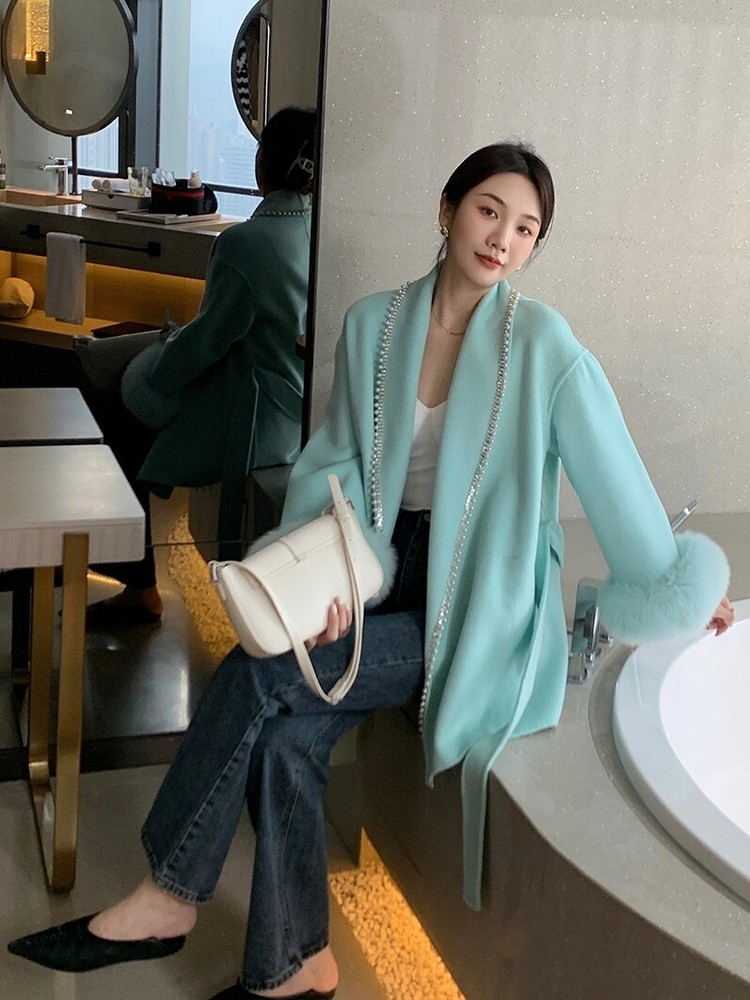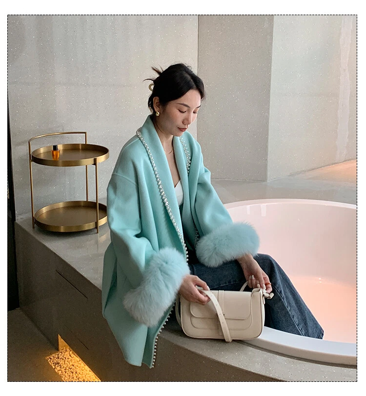 The mint color is very pretty, the fur is soft, and the product is exactly as shown in the detailed image. It is an oversized hooded jacket, so it looks big, but I wear it without worrying about the cold weather. I am very satisfied with this product.