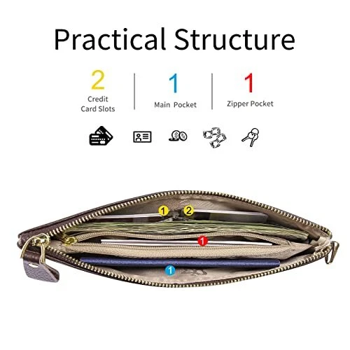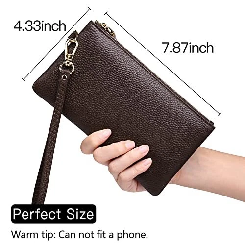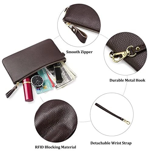 Return Policy Fast Delivery Trusted seller Women's Wristlet Clutch Slim Leather Wallet RFID Blocking Handbag Product Description [Genuine Leather]Our wristlet wallet is made of soft premium pebbled top-grain genuine leather, is sturdy but very soft to the touch. Great stitching and quality metal on the snap, zipper, and handle. This ensures that the wristlet continues to serve you [RFID Blocking]The need to secure your most crucial information keeps increg each day. We make this possible for you by fitting each of our wristlets with an RFID-blocking feature. It adopts high-security level technology when it is closed, blocking all signals from your credit/debit card or even your ID cards. This ensures that no unauthorized persons can sniff around your purse [Slim & Practical]The leather wallet has a main pocket, a zipper pocket, and two credit card slots. Large enough to hold your cash, cards, bills, receipts, and other necessary items. 3.57 ounce, slim and lightweight enough, easy to put into your backpack or hold in your hand [Wristlet & Clutch In One]This wallet is attached to a detachable wrist strap that can be used as a wristlet purse or small phone clutch, which keeps you easily carry this bag on traveling, shopping, business, or vacations.Warm tips:This wallet can only hold 6.5 inches and less than 6.5 inches of cell phones without a case [Warm reminder] provides our customers with prompt responses and services, if t is any issue regarding our wallet, a satisfactory solution to your issue is always Shipping Returns Payment Shipping Shipping is FREE to all addresses other than APO/PO boxes in the lower 48 states. All our stock ships from US-based warehouses. Shipped via USPS or UPS (depending on location and package weight) Unless stated otherwise, all orders will ship within 24-72 hours of your payment being processed. Check our feedback to see the great reviews of FAST shipping we offer. Returns Seller does not accept returns Payment We currently accept payment via eBay managed payments only. Once payment is cleared, we will dispatch your shipment within 1-3 business days. Please refer to the "Shipping" tab for more information regarding shipping speed to your destination.