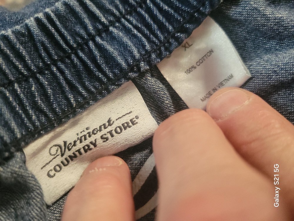 This women's blue jean skirt is perfect for any occasion, whether it be travel, a party, or just a casual day out. The skirt is made from a comfortable cotton blend and features an elastic waist for a perfect fit. The knee-length A-line style is flattering for all body types, and the solid blue color is both classic and versatile. The skirt also has accents such as a pull-on closure and a high rise, giving it a vintage-inspired look from the 90s. This Vermont brand skirt is a regular size type and comes in size XL. The fabric type is denim, and the skirt is perfect for those who love a mix of comfort and style.