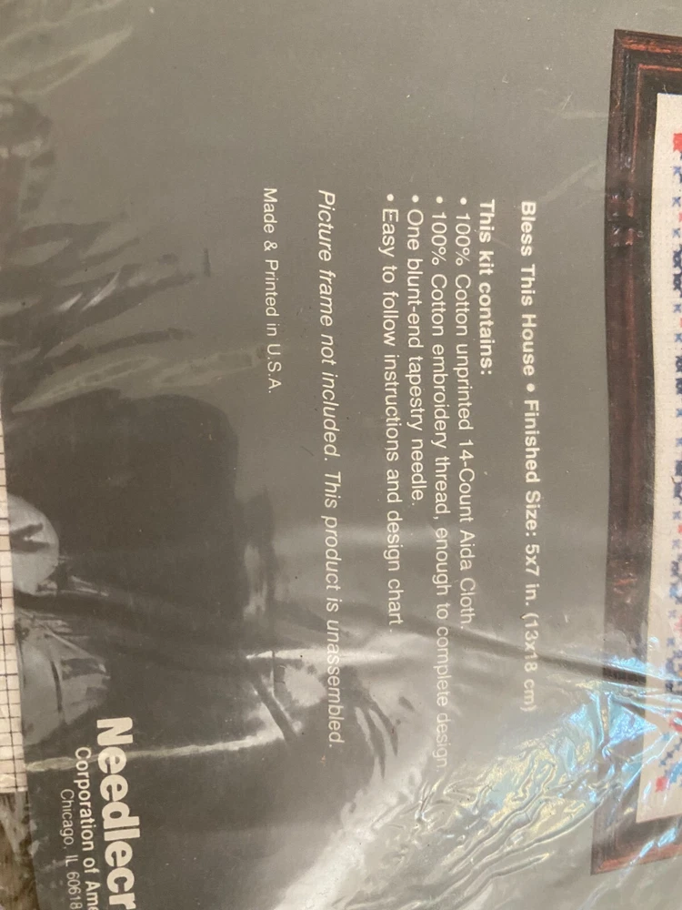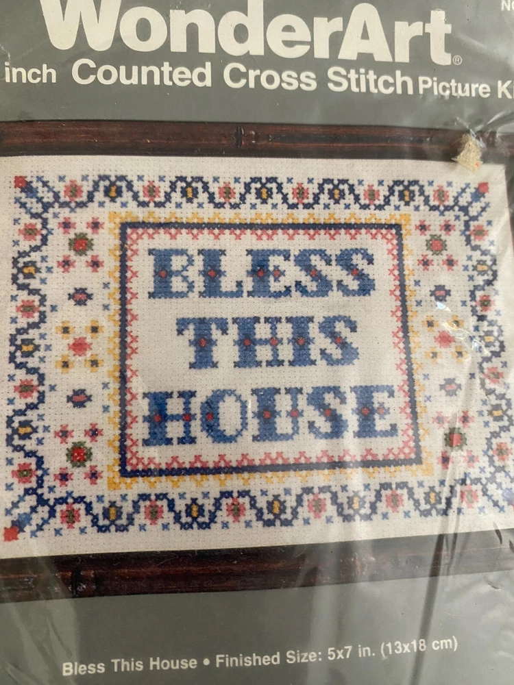 Wonder Art Counted Cross Stitch Kit #5519 Bless this House Made in USA 5x7” Vtg.