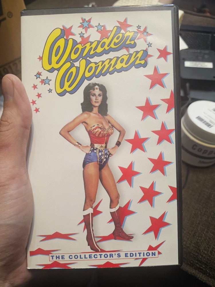 The Wonder Woman Collector's Edition VHS is a rare and highly sought-after collectible for fans of the iconic superhero. This special edition VHS contains the original movie in pristine condition, making it a valuable addition to any movie or comic book collection. With its unique design and limited availability, this VHS tape is a must-have for any Wonder Woman enthusiast looking to own a piece of superhero history. Full collection of vhs tapes. The collectors edition!