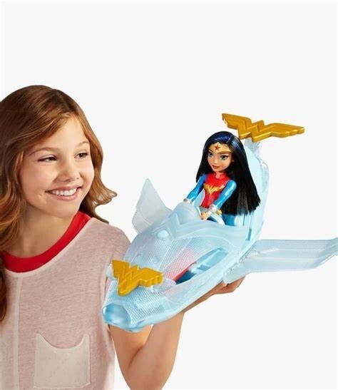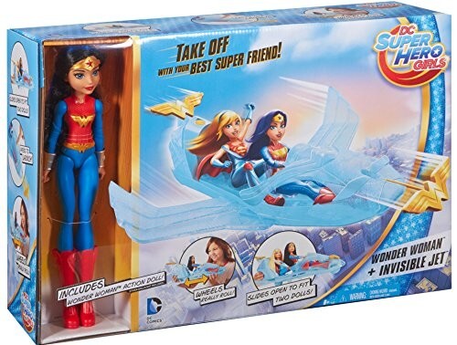 Get ready for some superhero action with this Wonder Woman Doll & Invisible Jet Playset! The set includes a Wonder Woman action figure and an Invisible Jet vehicle, both made of durable plastic materials. With a height of 12 inches, the set is perfect for children aged 5-7 years who are fans of the Justice League and the Wonder Woman franchise.The playset is an original, licensed reproduction from the DC brand and features the character Wonder Woman in her classic blue costume. The set is perfect for imaginative play and allows children to create their own adventures with Wonder Woman and the Invisible Jet. This item is a must-have for any young fan of comic book heroes and is sure to provide hours of fun.