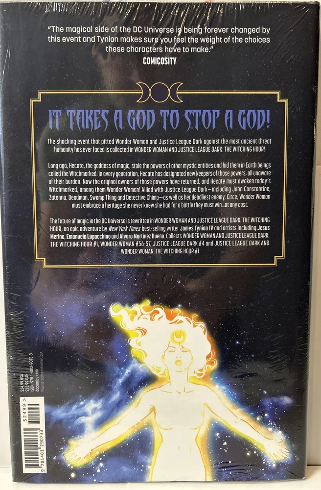 This sealed hardcover edition features the epic crossover event between Wonder Woman and Justice League Dark: The Witching Hour. Written by James Tynion IV and illustrated by a talented team of artists including Raúl Fernández, Jesús Merino, and Emanuela Lupacchino, this comic explores the dark and mystical corners of the DC universe. Join the Justice League of America as they face off against gods and witches, including the likes of Zeus, Hecate, and Circe. With a stunning cover by Riccardo Federici and Jenny Frison, this comic is a must-have for fans of superheroes and fantasy. The book is in brand new condition and contains no spoilers for those who have not yet read the series. Immerse yourself in the magical world of DC with Wonder Woman and Justice League Dark: The Witching Hour. Sealed Hardcover