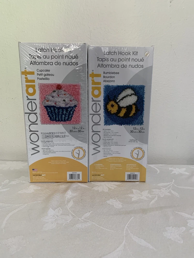 Wonderart latch hook kits 12x12 Cupcake And Bumblebee New Sealed Boxes