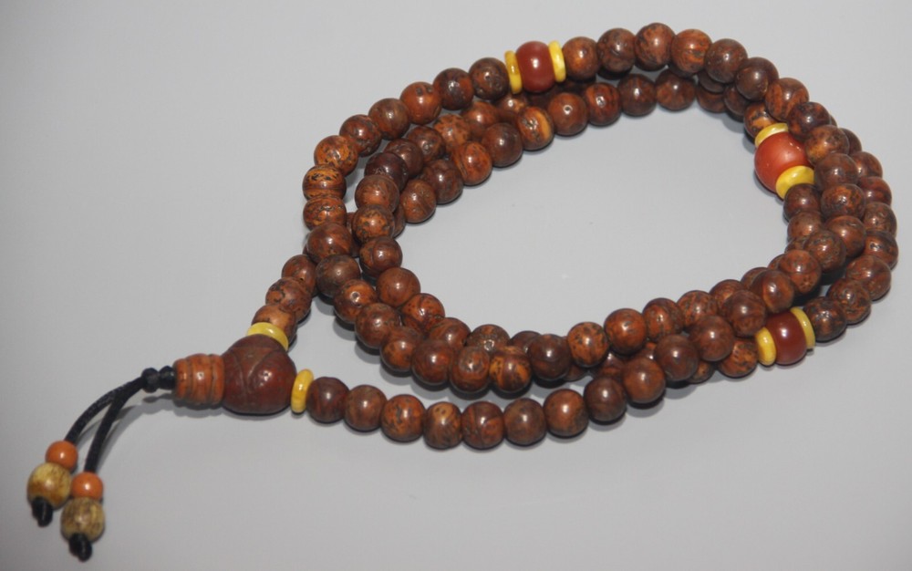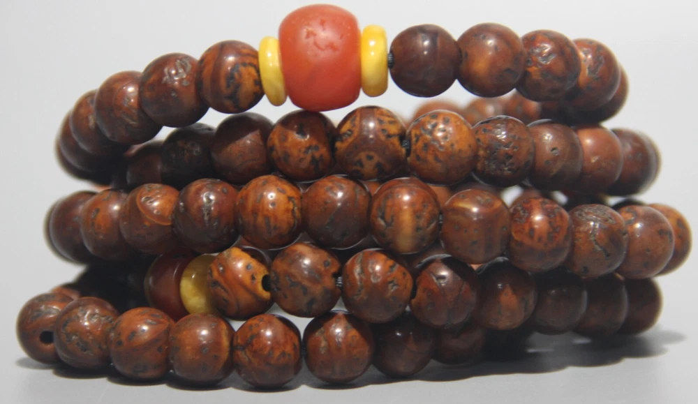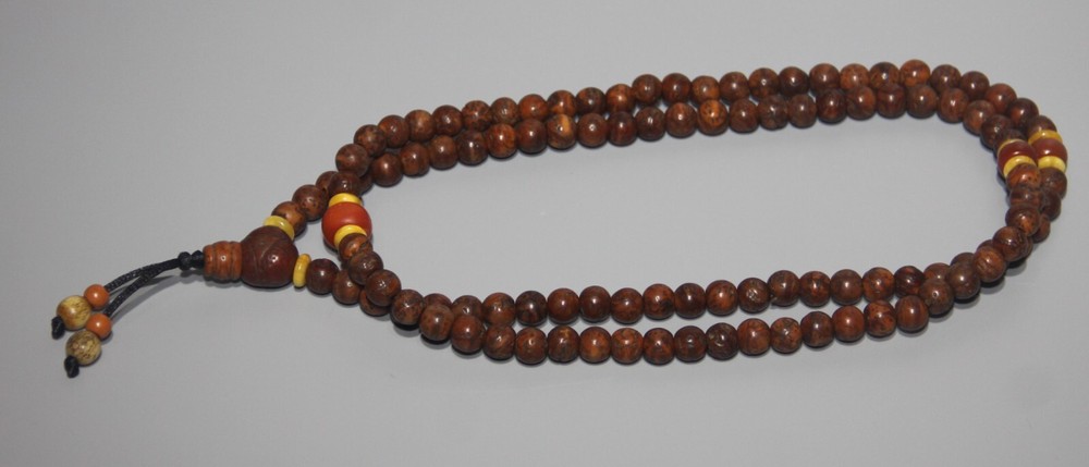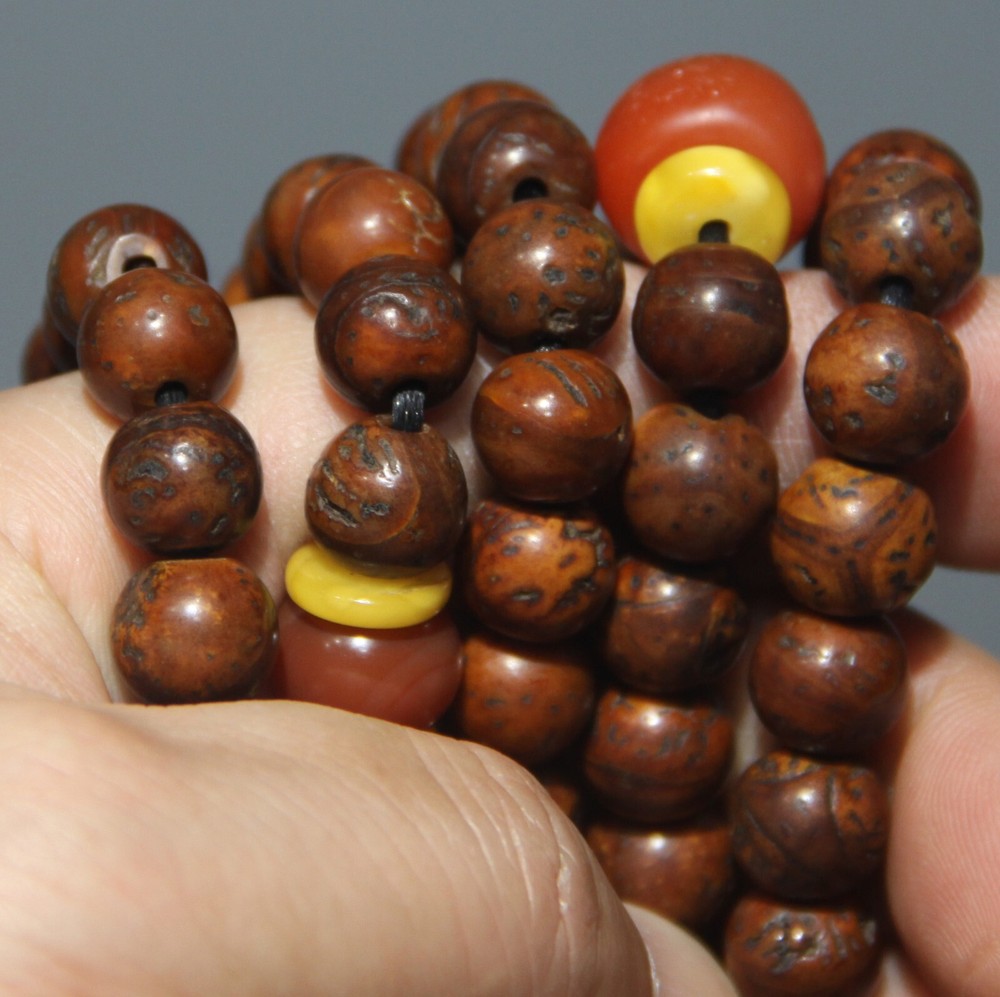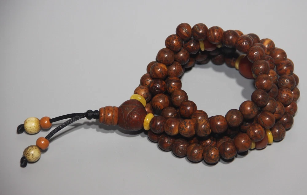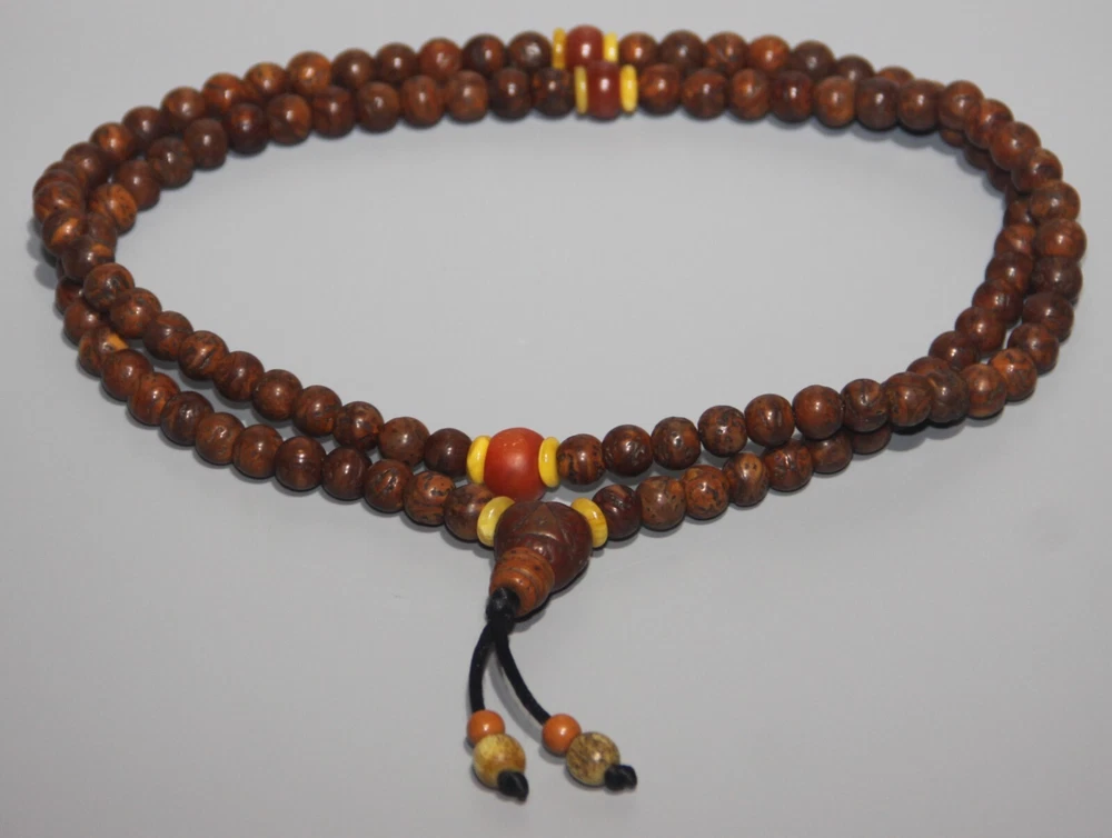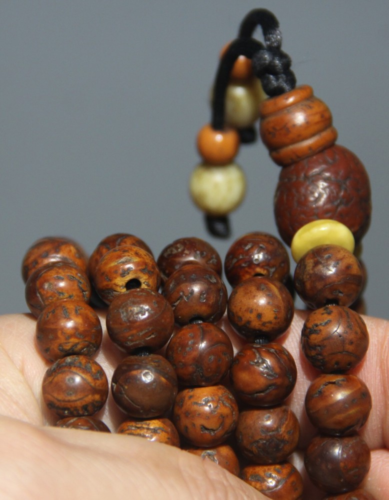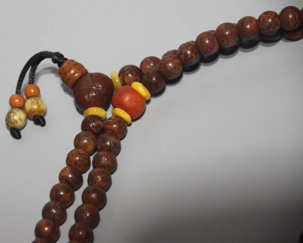Wonderful Tibet 108P Old Buddhist Dragon Eye Bodhi Seed Mala Prayer Bead Amulet
