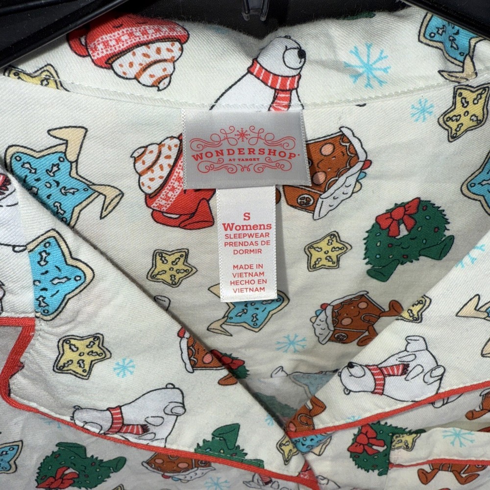 Get cozy in this adorable Polar Bear Long Sleeve Pajama Top from Wondershop. Made from 100% cotton, this comfortable top is perfect for a good night's sleep or a relaxing evening at home. The cute gingerbread house design adds a touch of festive fun to your sleepwear collection. This pajama top is designed for women and features a long sleeve design for added warmth. The top is brand new and in excellent shape, ready to be added to your wardrobe. Get ready to drift off into a sweet dream with this cozy and stylish pajama top.