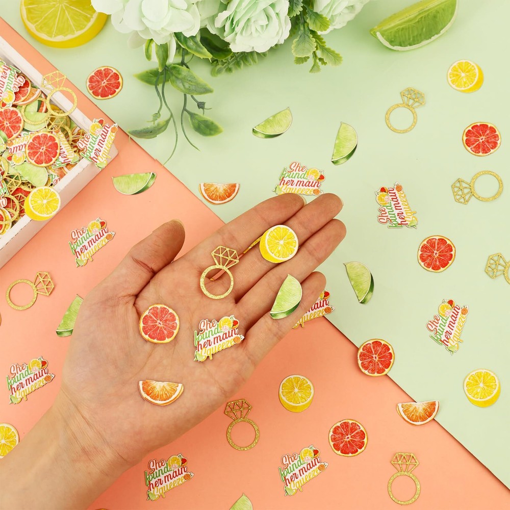 Wonmelody 200 Pcs Citrus Themed Bridal Shower Confetti Decor She Found Her Main Squeeze Bridal Shower Decor Tangerine Eucalyptus Scatter Confetti for Lemon Tropical Citrus Bachelorette Wedding Party Fresh fruit confetti is perfect for a summer bachelorette party. Package Includes: 200*citrus themed confetti(40*0.70inch*1.10inch ring pattern, 30*0.82inch*0.86inch grapefruit pattern, 30*0.82inch*0.78inch orange petal pattern, 30*0.82inch*0.78inch orange pattern, 30*0.90inch*0.78inch lime pattern, 40*1.18inch*0.86inch letter pattern) She found her main squeeze confetti:You will get 200*citrus themed confetti. There are six different patterns in total Citrus theme bridal shower:Fruit patterned bachelorette party confetti is decorated with a red, orange, yellow and green tangerine fruit pattern along with a diamond ring and SHE FOUND HER MAIN SQUEEZE patterned confetti. If you want to have a she found her main squeeze themed bachelorette party but would like to have some of the same themed confetti that creates a sense of ambiance, how about choosing this fruit themed confetti to give your party a detailed flair Material:The fruit-patterned bachelorette party confetti is made of glitter paper, and the reflective effect in the sunlight will give a special sense of fresh ambiance. The double-sided printing process will also make the confetti easier to photograph and decorate Wide applications:We recommend that you use she found her main squeeze confetti for occasions such as fruit themed bachelorette parties, she found her main squeeze bachelorette party, lemon bachelorette party, orange bachelorette party, fruit themed bachelorette party, citrus themed engagement party, etc Warm tips:Confetti is generally used to throw on table tops, in the air, or to stick on walls, drink bottles, and cake topper for decoration. If you have any questions or suggestions about our products please feel easy to contact us, we will give you a satisfactory answer as soon as possible Shipping from the USA All of our products are shipped from the USA, ensuring quick delivery to your destination. Payment We offer the following payment methods: PayPal, credit card, bank transfer, and eBay's secure payment system. Free Shipping & Free Returns Shipping within the USA is FREE. Additionally, any return is absolutely free for you. Risk-Free Purchase You have the option to return an item within 30 days without any justification. We cover the return shipping costs! Fast Shipping We ship immediately upon receipt of payment. Generally, the package is delivered within 2-3 days in the USA. If it takes longer, we will contact you. Quality and Costs Made in Europe, USA, China No customs fees or additional charges Total satisfaction guarantee Invoice with declared VAT available upon request in .pdf format Feedback Your feedback is very important to us. After you pay for your purchase, you will automatically receive positive feedback from us.