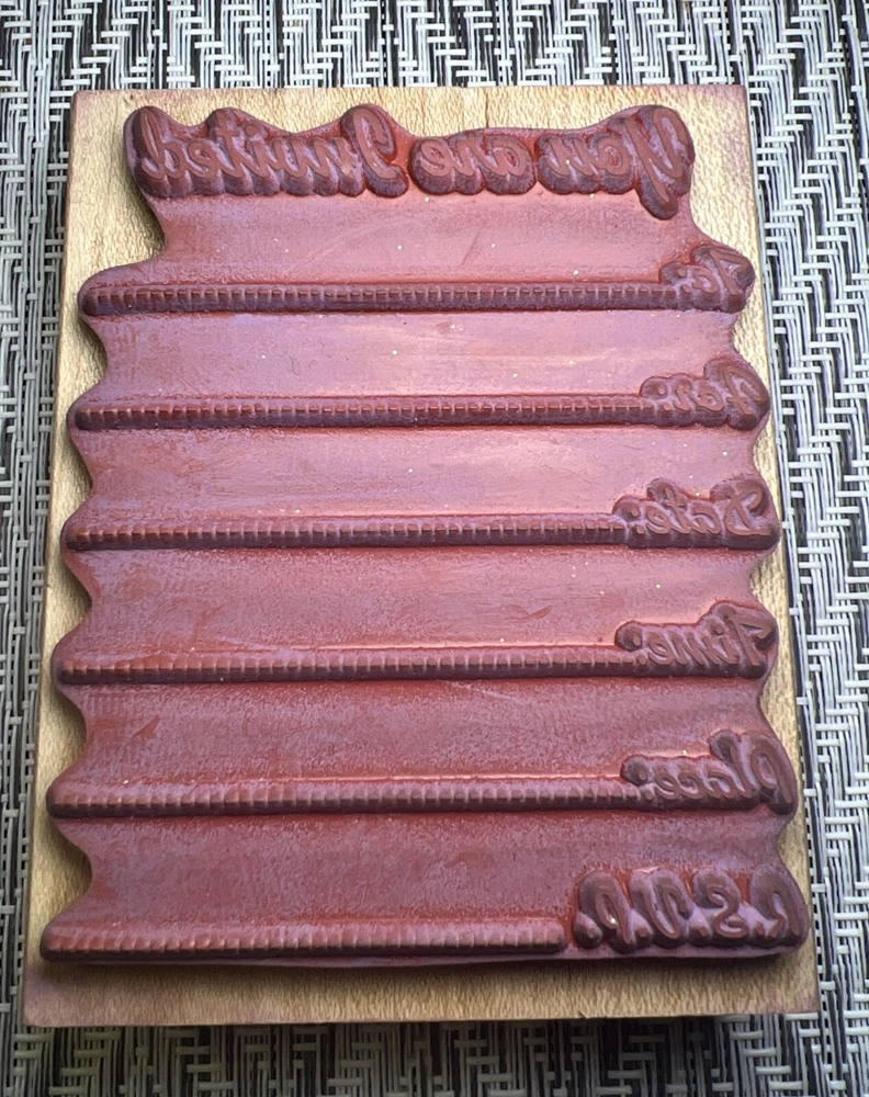 Craft your next special occasion invitation with the Embossing Arts Wood Block Mounted Rubber Stamp. Featuring the thoughtful phrase "You are Invited," this stamp is perfect for adding a personal touch to your crafting projects. Its rubber construction ensures a crisp, clean impression every time, bringing your invitations to life with a stylish, word-themed design. Ideal for stamping and embossing enthusiasts, this single-unit block stamp is a versatile addition to any craft collection. Whether you're prepping for a wedding, a birthday party, or any other special event, this stamp, with its model number Invitation, will help make your invitations stand out with its unique, artistic flair.