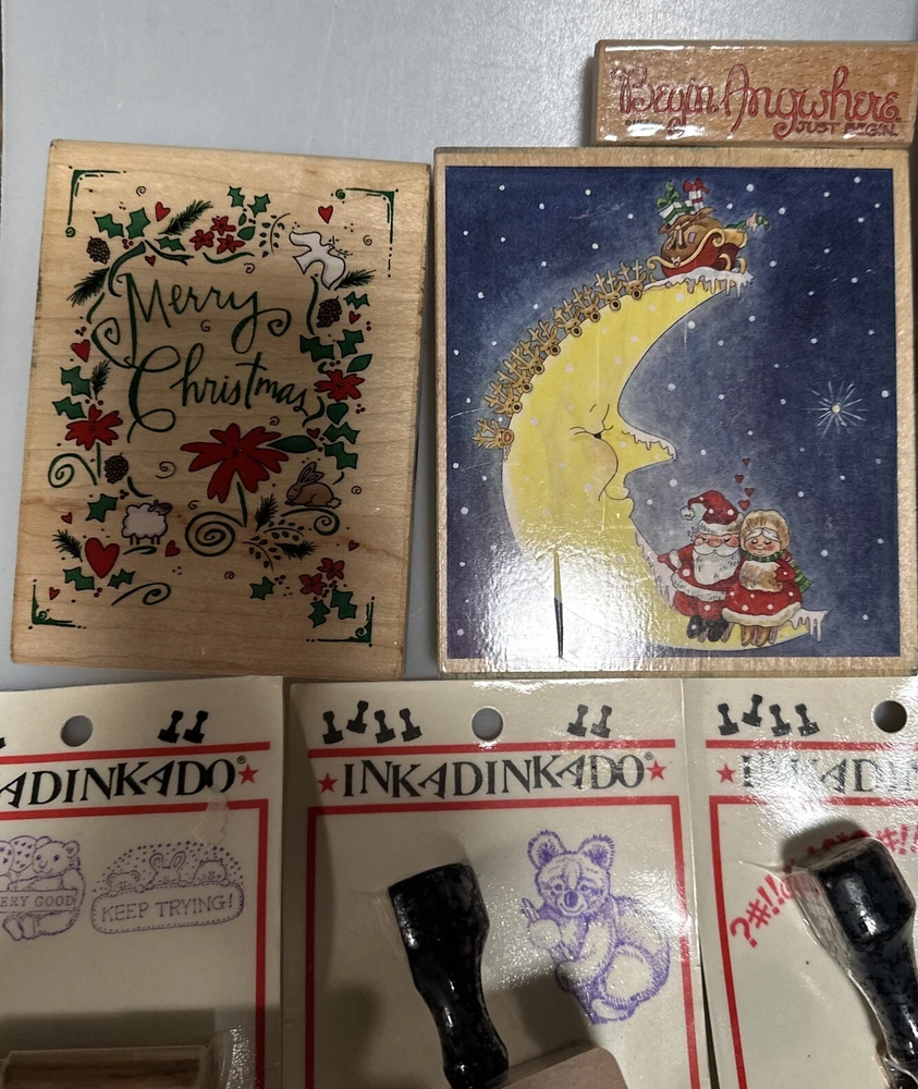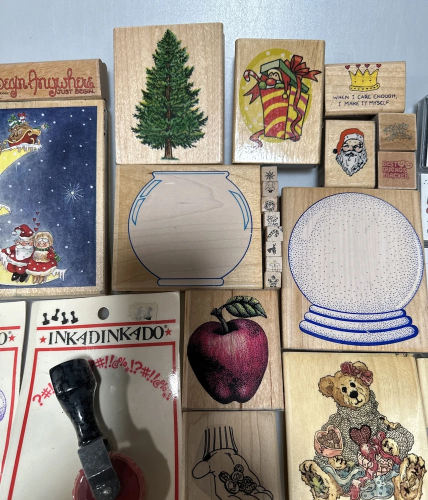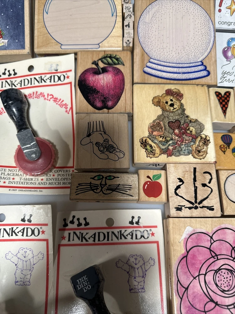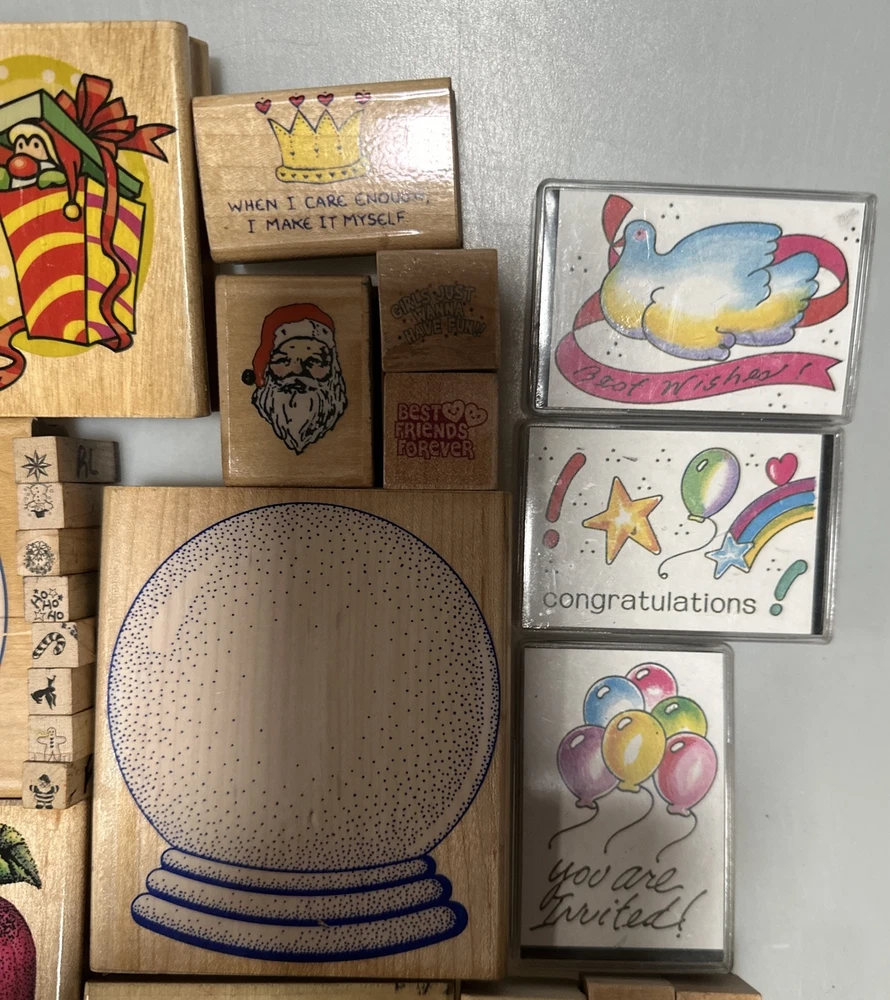 This is a lot of 50 various rubber stamps some new most used. Please ask all questions prior to purchase.