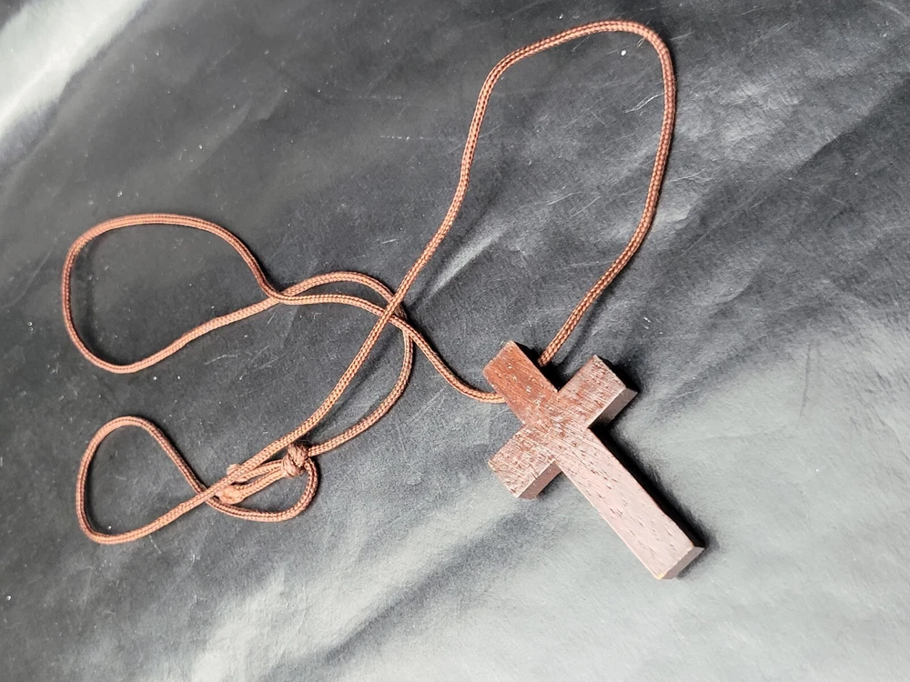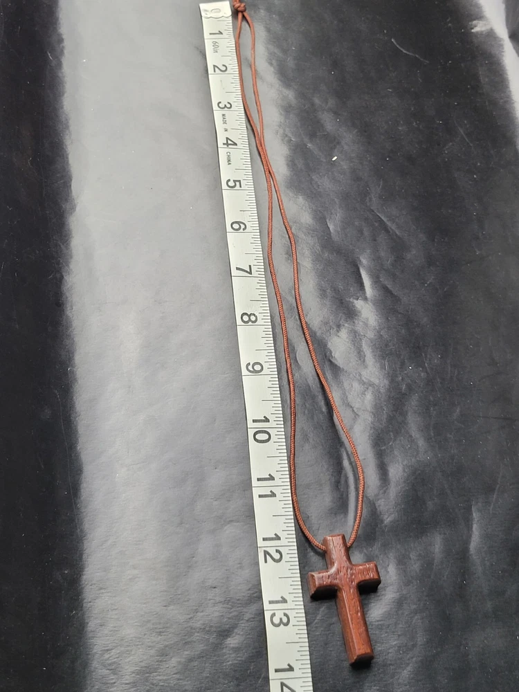 This fashion necklace features a unique wooden pendant in the shape of a cross, with a beautiful red color and excellent cut grade. The pendant is set in a solitaire style and has a vintage feel to it. The necklace is made of wood and has a charm pendant/locket type. The secondary stone is wood and there is no stone. The necklace is perfect for those who appreciate art and want to add a touch of style to their outfit.