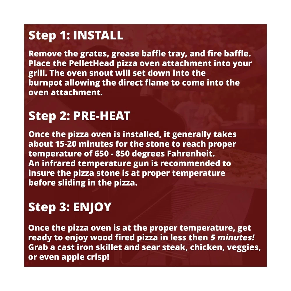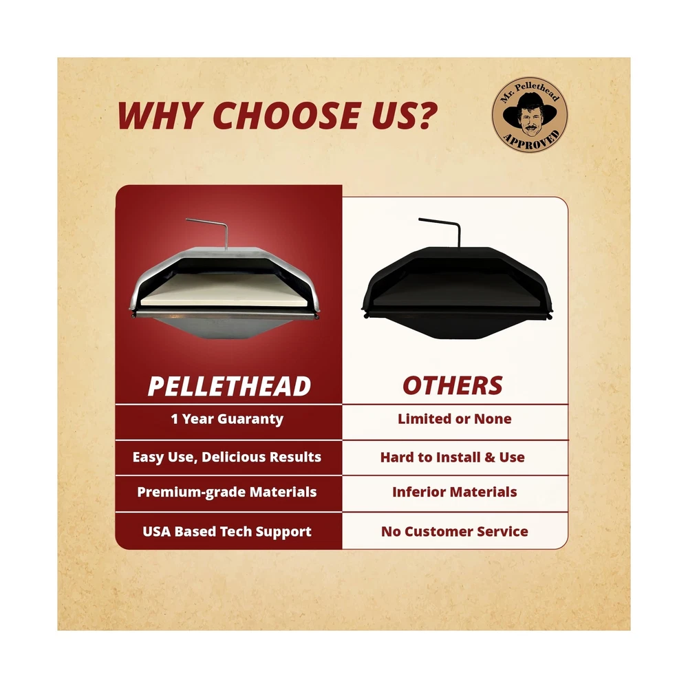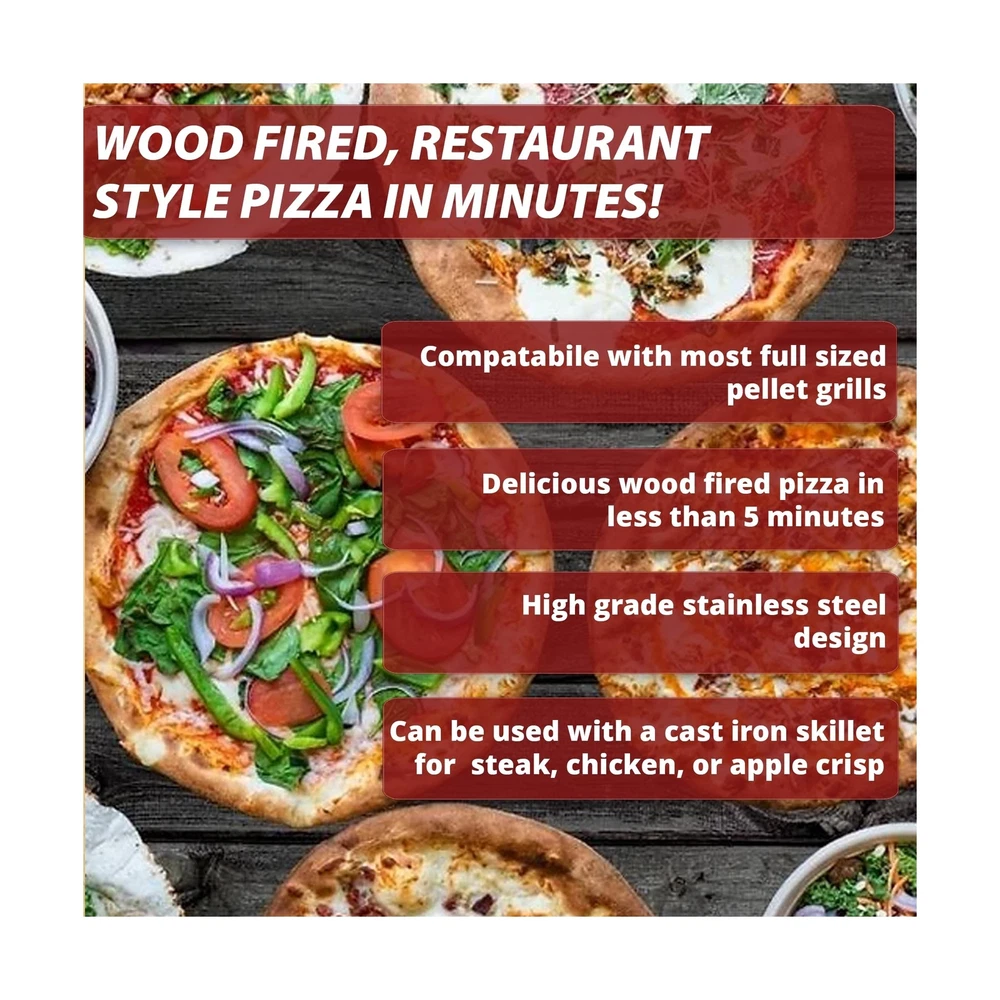 Brand New Wood Fired Pizza Oven Attachment for Most Full Sized Pellet Grills - Compatible with GMG, Traeger, Pit Boss, Camp Chef, Rec-Tec, Smoke Hollow and More Manufacturer model: ULTIMATE PELLET GRILL PIZZA ATTACHMENT: Elevate your pizza-making game with our intelligent pizza oven attachment. Convert your Pellet Grill into a wood pellet-fired pizza oven for an authentic wood-burning pizza experience at home. RESTAURANT QUALITY PIZZA IN MINUTES: Say goodbye to mediocre homemade pizzas. Our pizza oven funnels heat directly from the grill, reaching temperatures of up to 800F, allowing you to cook perfect pizzas in 2-4 minutes. The quick design allows you to enjoy delicious pizza with friends and family in no time. ENHANCED HEAT DISTRIBUTION: The innovative chamber ensures optimal airflow, distributing convective, conductive, and radiant heat for evenly cooked pizzas. Achieve the ideal balance of softness and crispiness in the crust. VERSATILE AND PORTABLE: Compatible with all full-size pellet grills with a center burn pot. Easily installed with adjustable rods. Our attachment is lightweight and perfect for outdoor gatherings. Take it to picnics or camping trips to turn any space into a gourmet pizza haven. UNLEASH THE PIZZA ARTIST WITHIN: Give the gift that ignites culinary passion - the Pellethead Grill Pizza attachment. Perfect for seasoned chefs and aspiring home cooks, this versatile attachment opens the door to a world of delicious possibilities beyond pizzas. Whether you own a Trager, GMG, or any other pellet oven, this attachment is your ticket to elevating your cooking game and indulging in many mouthwatering recipes. Description Shipping and Handling Please allow 5-7 business days for the package to arrive, regardless of buyer location within the US. We will provide an online tracking number to you once the item has been shipped. It may take a few business days for our automated system to process the tracking number onto eBay. However, this will not affect the shipping times. Return Policy All our products are brand new and sealed. All items qualify for returns within 30 days of receipt. Feedback We take our reputation seriously. If you have any questions or concerns, please contact us and we will respond back to your message within 24 hours.