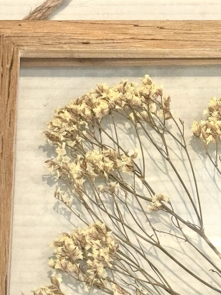 Wood Framed Pressed Flower Hanging Art Yellow Cottagecore Handmade