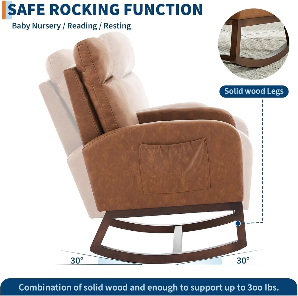 Chaise Lounge Glider Rocking Chair High Back Rocker Armchair Sofa Seat Indoor US